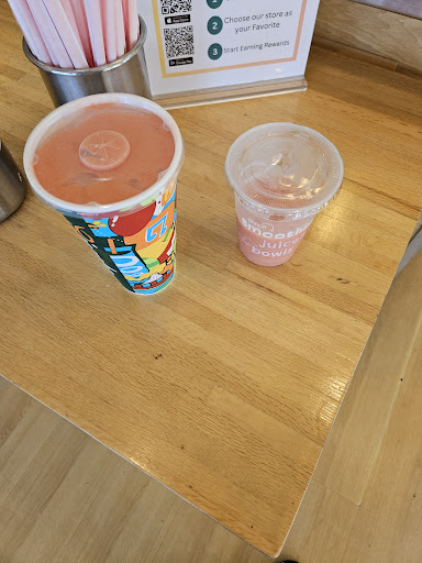 Read moreThe juices and the smoothies are very delicious. But this last visit I was very disappointed in the fact that they ran out of ingredients to make their drinks. This particular day they were out of an ingredient that went into the peanut butter mood so they could not make that. Also they had just finished telling another customer who ordered right before me that they were out of bananas, so if he could order something else that did not include bananas. So when the girl asked me if I wanted something different to drink, I just told her no thank you and left. I was not about to contribute to their managers incompetence in putting in orders...