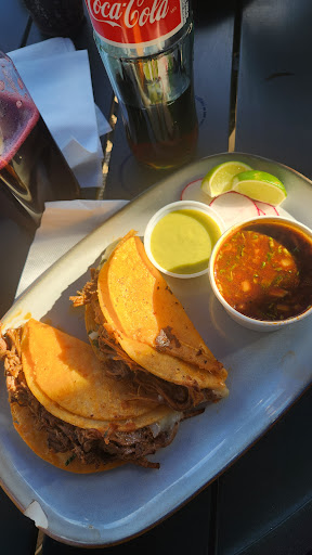 Read moreThis restaurant is AMAZING! We had delicious food while watching the world series on the beautiful patio. (This was our 2nd visit, and the inside of the restaurant is spotlessly clean and beautiful.) The staff is incredible and the owner is attentive and made sure we were fully taken care of. They started us with perfectly crisped chips and homemade salsa with horchata and jamaica. My wife and I looked at each other in amazement because we both grew up in the valley and this is hands-down the best horchata we've both ever had...and we have had a lot of horchata in our lifetime. Same with the Jamaica. Best we have ever had! We even had to confirm with our server...we said, "IS THIS HOMEMADE??" She said "EVERYTHING is homemade" and smiled. We were mindblown. It got even better when the food came. My wife ordered the quesabirria taco plate and I had the Birria Torta. Both plates were PERFECT. And we ordered the plantains for desert, which came with a condensed milk icing situation....which was sooo good. My son had a very happy time chomping on those. Please go have lunch or dinner and support this family-owned establishment, you won't be...