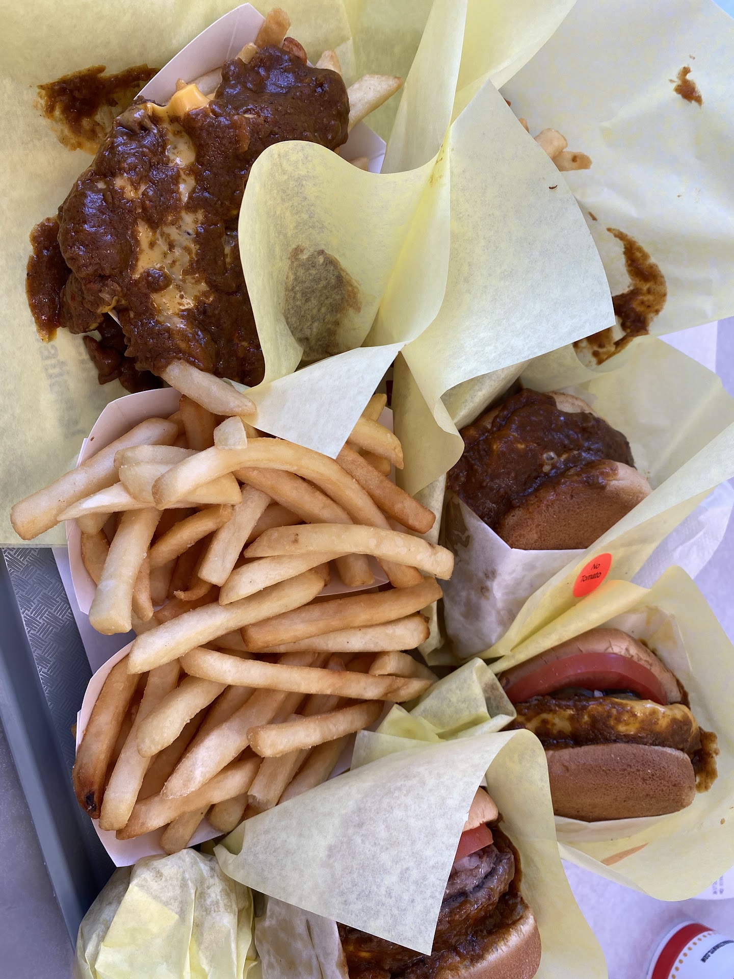 Chilli cheeseburger tasted very bland. Meat had no flavor to it, and the chilli was also very weak. I found myself eating a lot of the peppers and ketchup to squeeze some sort of flavor other than tomatoes and pickles. My hamburger, although it look very good and it was priced accordingly, was terrible. 3/10❌