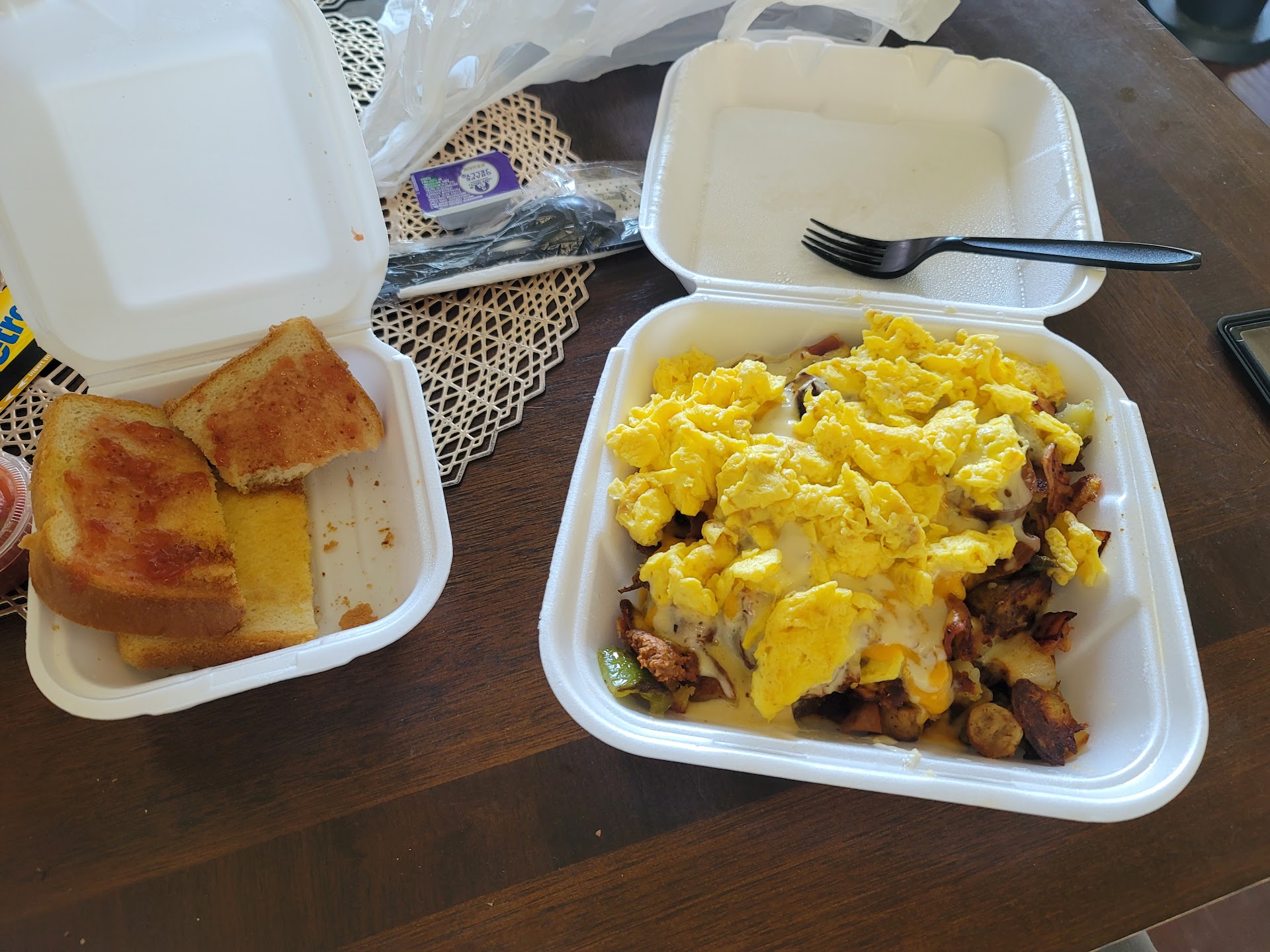Burrito was hot (temperature), delicious, and hefty. The ingredients were a bit segregated in each bite. For example, one bite was all potatoes, and one bite was all egg, cheese, or sausage. I ended up cutting mine up and eating it like a Burrito bowl instead. Maybe mixing the ingredients in a bowl before rolling the Burrito would resolve this. I'm glad they gave the salsa, it was much needed.