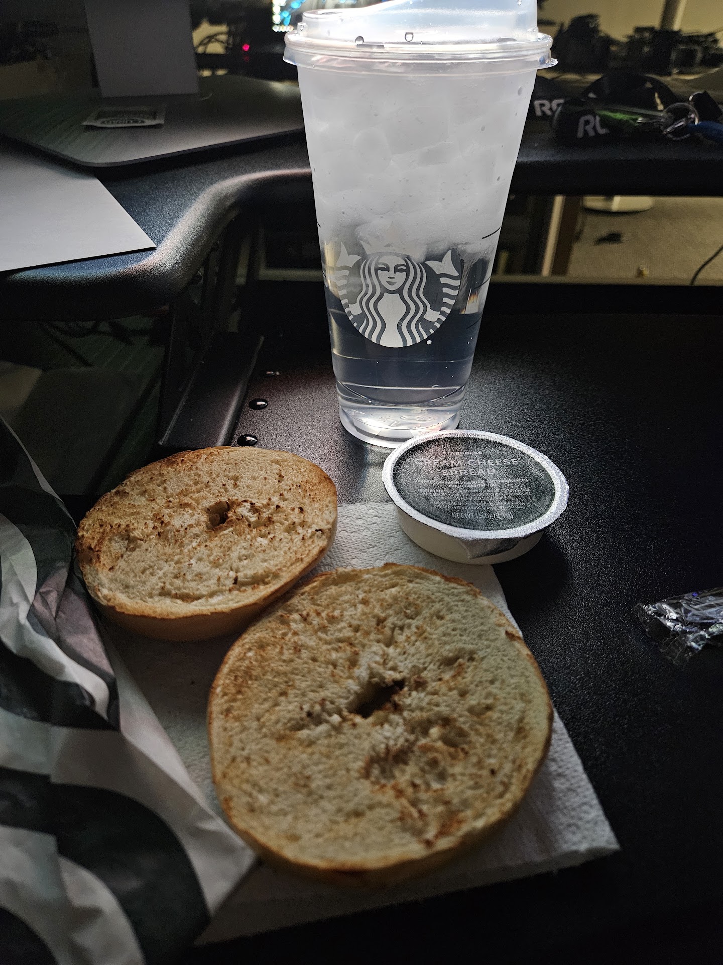 Read moreI stopped by this Starbucks today in the early morning to get a bagel. I was going to order it off the mobile app but decided that I wanted to eat my bagel fresh so I figure I'll order it when I'm at the store. Since I came in the early morning, I think only drive thru is open because all the chairs inside was on the table so I went to the drive thru line. There was only 2 cars in front of me but I didn't have to wait long. I got my plain bagel with cream cheese and asked for a venti iced water. By the time I pulled up to the window, my bagel was ready and my water. I tooked it back to my work office to eat it and it was great. The bagel was not over toasted and the cream cheese just added that extra delicious...