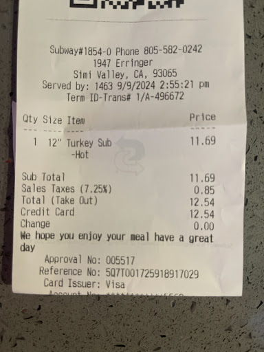 Read moreOne of the two employees on the Closing shift of 09/15/23 needs to fired over sanitary concerns. I was already being helped by a really friendly employee who always helps me (I don't know his name other than he's the only one who hardly speaks English) this dude is always nice and knows how to make a good sandwich. While waiting for him to finish with another customer the employee in question was out mopping the lobby/bathroom. I was on my phone and noticed him stop halfway through and bring the mop and bucket behind the counter. I stop paying attention because the other customer is almost done with his order when all of a sudden I hear this guy trying to take over, I kindly decline and say I'm going to have the other employee help me finish my order and he says no I'm here to help him. When I declined again he got very frustrated and visibly angry. I don't know about you guys but I don't want my food to be anywhere near someone who was obviously just cleaning a bathroom and trying to close the store an hour early. Moral of the story this location will make your sandwich immediately after detaling the lobby and bathroom...