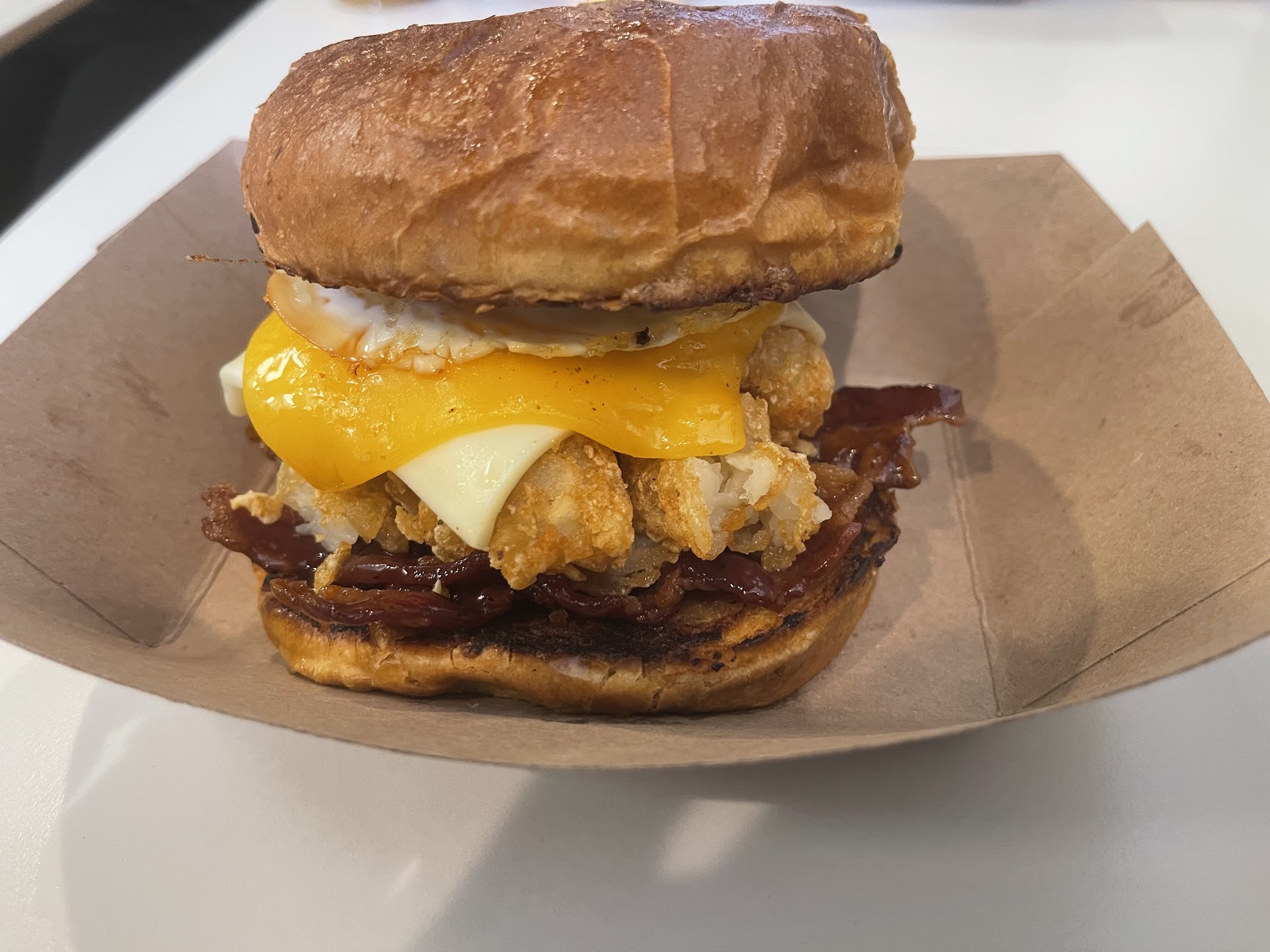 The quality control is honestly baffling to me. The bacon is actual legit perfectly cooked bacon (not the sad reheated bacon shaped rubber you get at a McDonald's). The egg in your sandwich isn't overdone. You get halfway through your sandwich and the glorious yolk breaks and starts running down your hand (I'm sure they'll cook it through for the children out there). The tots/hashbrowns are crispy out and soft in. You bite your sandwich and you get that hint of maple flavor, not too much, just enough to make it feel like breakfast as a kid (when the pancake syrup spread over your plate and got onto your eggs and bacon). Every bit is thoroughly satisfying and it's not skimpy. Despite the food being absolutely delicious I dont find myself sad after finishing my sandwich. My appetite is completely sated and I'm absolutely content (neither over-full nor under-fed).