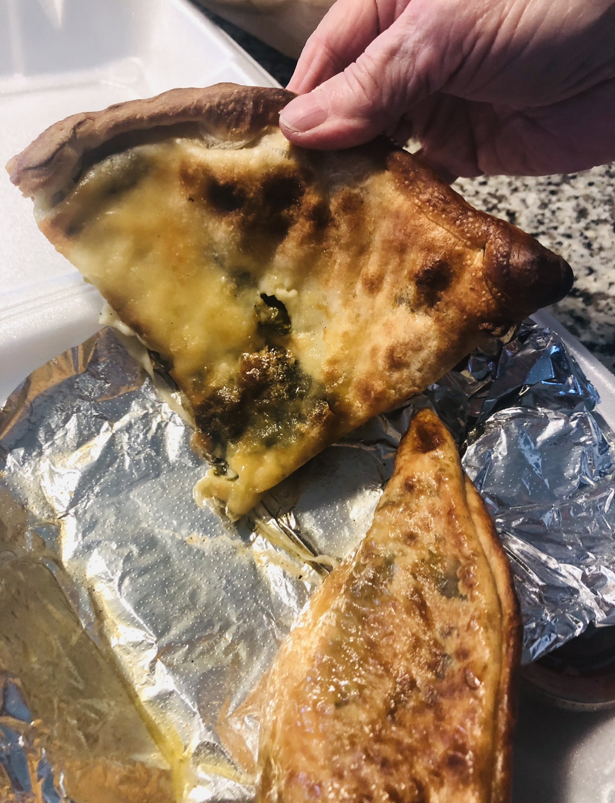 I thought when owner or manager was in I would take the styrofoam box in the two pieces of pizza in to show.