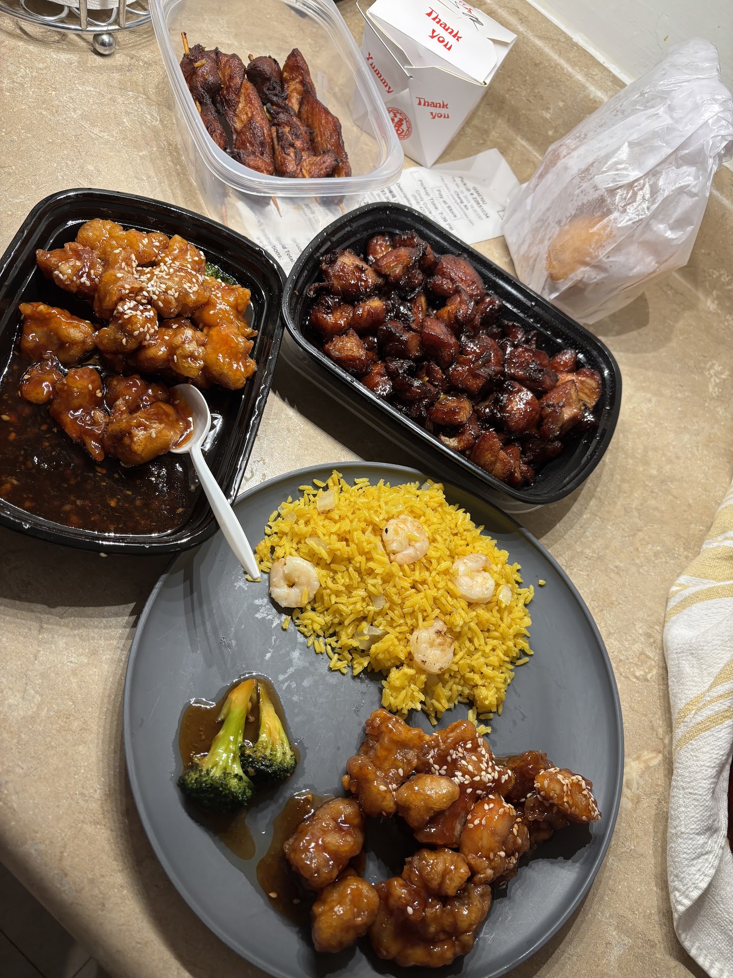 First time and woman at front was not very pleasant. Ordered pepper steak and onions and also ordered bourbon chicken . Pepper steak was spongy and fatty . Bourbon chicken was all fatty . When asked about the chicken we were told it was chicken and why is it fatty like pork bites. The sauces were very plain and no flavor. When asking if it was bourbon chicken or pork she got mad ! Asked for a refund and she said since I hate most of the vegetables on pepper steak I couldn’t have refund . She gave refund for bourbon chicken. Everything went in the trash a waste of $27.00 for 2 meals and 2 drinks . Didn’t take pictures due to just wanted to get out of the restaurant. They have one table inside and we ate inside very dirty ceilings and vents ....