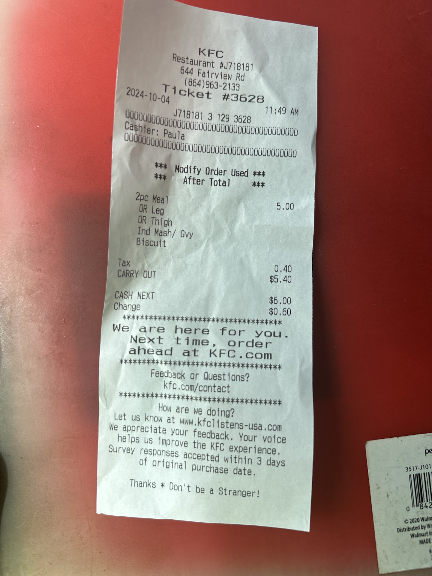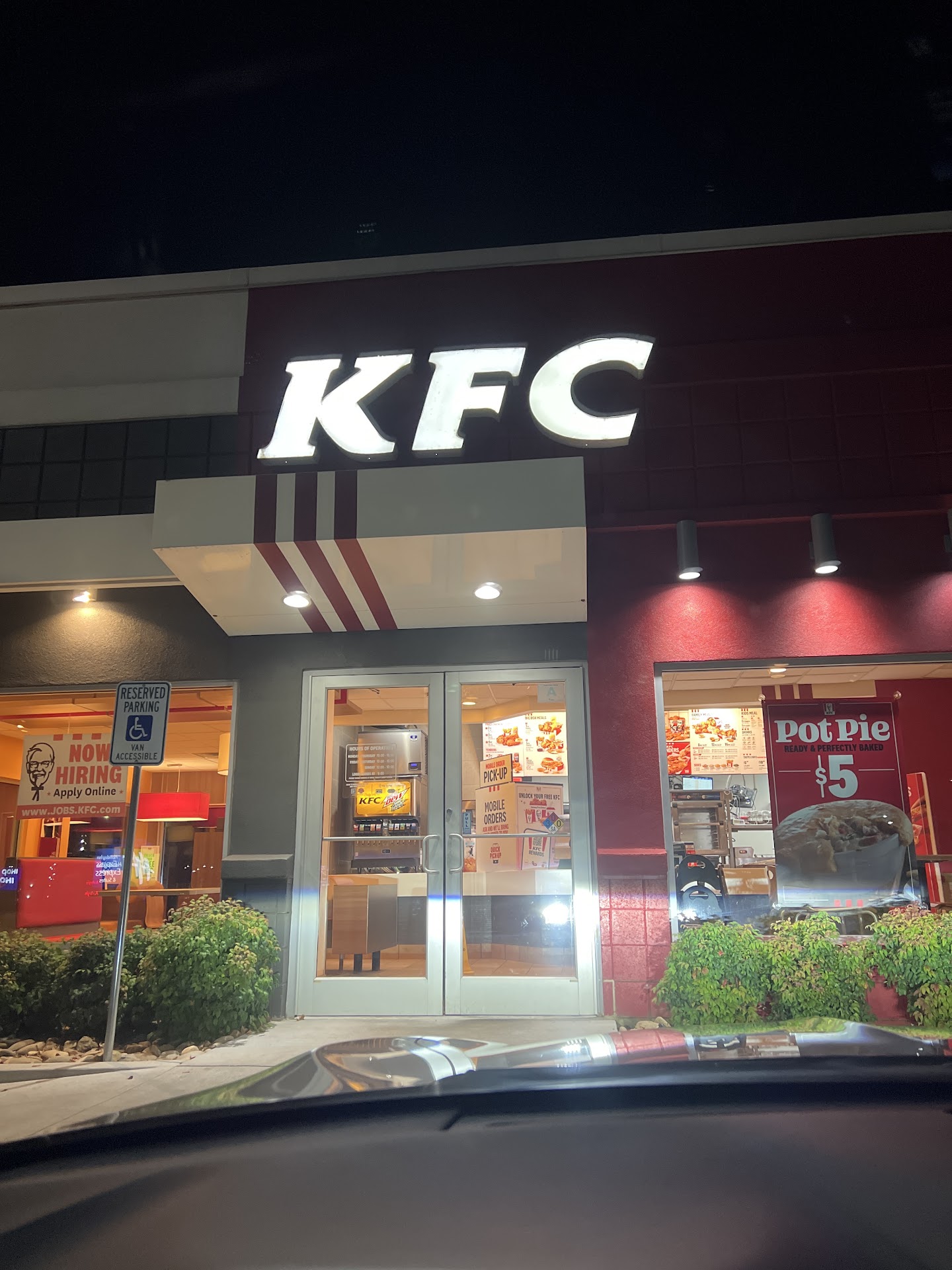 Ā Ā Ā Read moreThis was the worst experience! I placed my order at the drive thru at 7:37 pm I was asked to pull around the front and my order would be brought out to me. At 8 o' clock I too my 2 kids out of the car ans walked in the girls at the front completely ignored me. When I asked about my order I was asked "what did you order" I repeated my order. Everyone else thst came in before me got their order. It's now 8:10 and we are still in line waiting i was asked again what my order was I repeated it again. The girl in the back assured me it was coming. I received my order at 8:17pm still didn't get my drink , waited all that time and the food was not fresh they forgot my sauces and all... I did not retaliate the way I would because my kids were with me and I'm working on my peace. But this blew my mind. People were leaving and all because they did not have anything together. Worst experience ever from KFC...Definitely will not be back... I see why yall are hiring all positions because obviously nobody knows what they are doing. I called back to explain to the manager she had no sense of remorse just a slack ass apology for the long wait. What I'm suppose to do with an "I'm sorry" when I got hungry kids waiting for apst am hour for forgotten items and not fresh foods... also no...