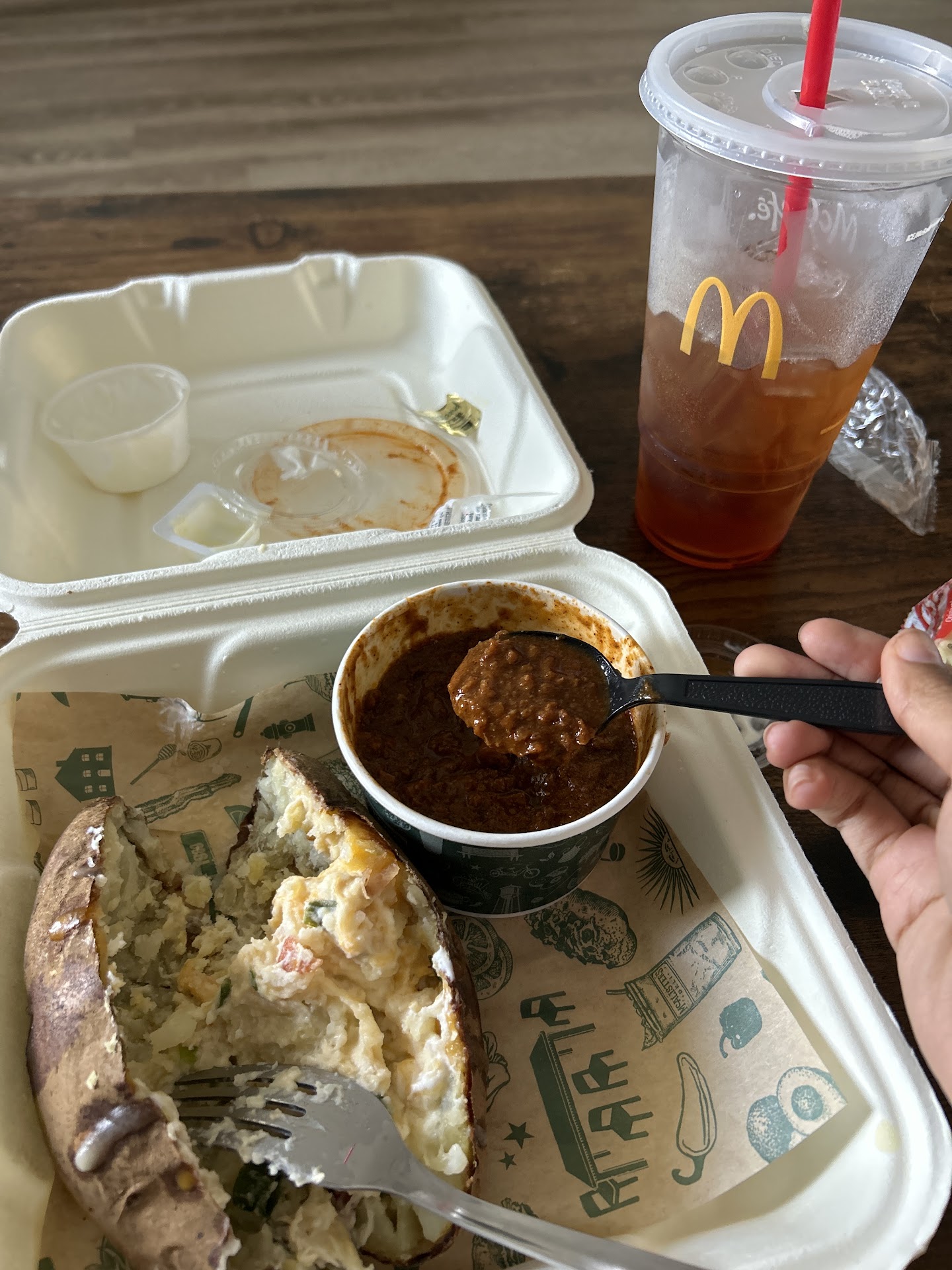 Read moreWe came in shortly before close. There were 3 of us. The spud was good, french dip and chicken sald sandwiches were all good. Our food arrived quickly. The person taking our order said polite things, but her demeanor was one of not wanting to be there , or she needed a nap. We finished our food at 9:05 roughly. I took our plates in and asked for a refill on tea. Another female informed me they had thrown the tea out, as it was after close. I went to the restroom and came back and asked" if you have 3 people still eating that ordered tea, why would you throw it out?" The answer i got was it was after close and protocol. I found this to be a dumb answer. The tea was in pitchers ( not urns), that probably had not been washed yet, and probably could be washed in less than a minute and they still had to wash our plates. In my opinion, they should at least ask diners if they need or want anymore tea before tossing it. I am a huge tea drinker ,in fairness, so this bothered me. Again the...