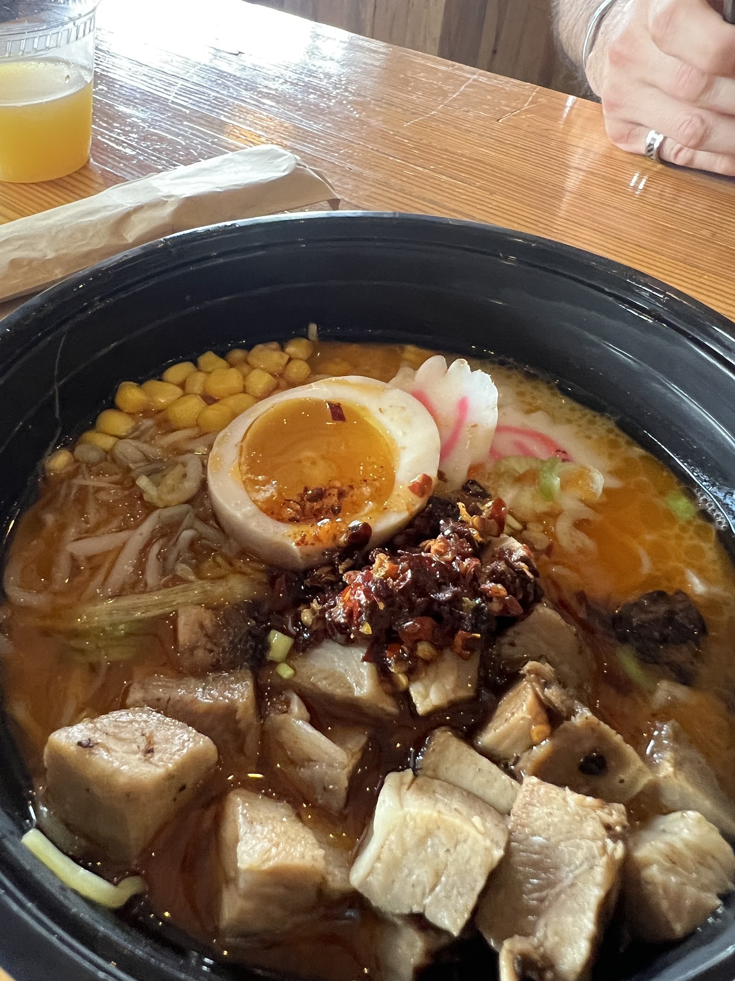 Read moreThe Vegan Ramen was very good! It was so nice having a gluten free noodle and vegan option, I haven’t been able to find a ramen place with these options before. My only complaint is how little there were toppings. I could count the bean sprouts, the corn, and everything that was a topping unfortunately. I saw the reviews and noticed that maybe they give less for to go orders. The broth was super tasty and so was the protein I added. Amanda placed my order and she did not fall short of amazing! She was super knowledgeable and helped me make sure everything was to my dietary standard and gave me the BEST recommendations. It was a little pricey for what it was (lack of toppings is making me salty haha) but the portion size was great especially for take out! I am very pleased and also stuff. I...