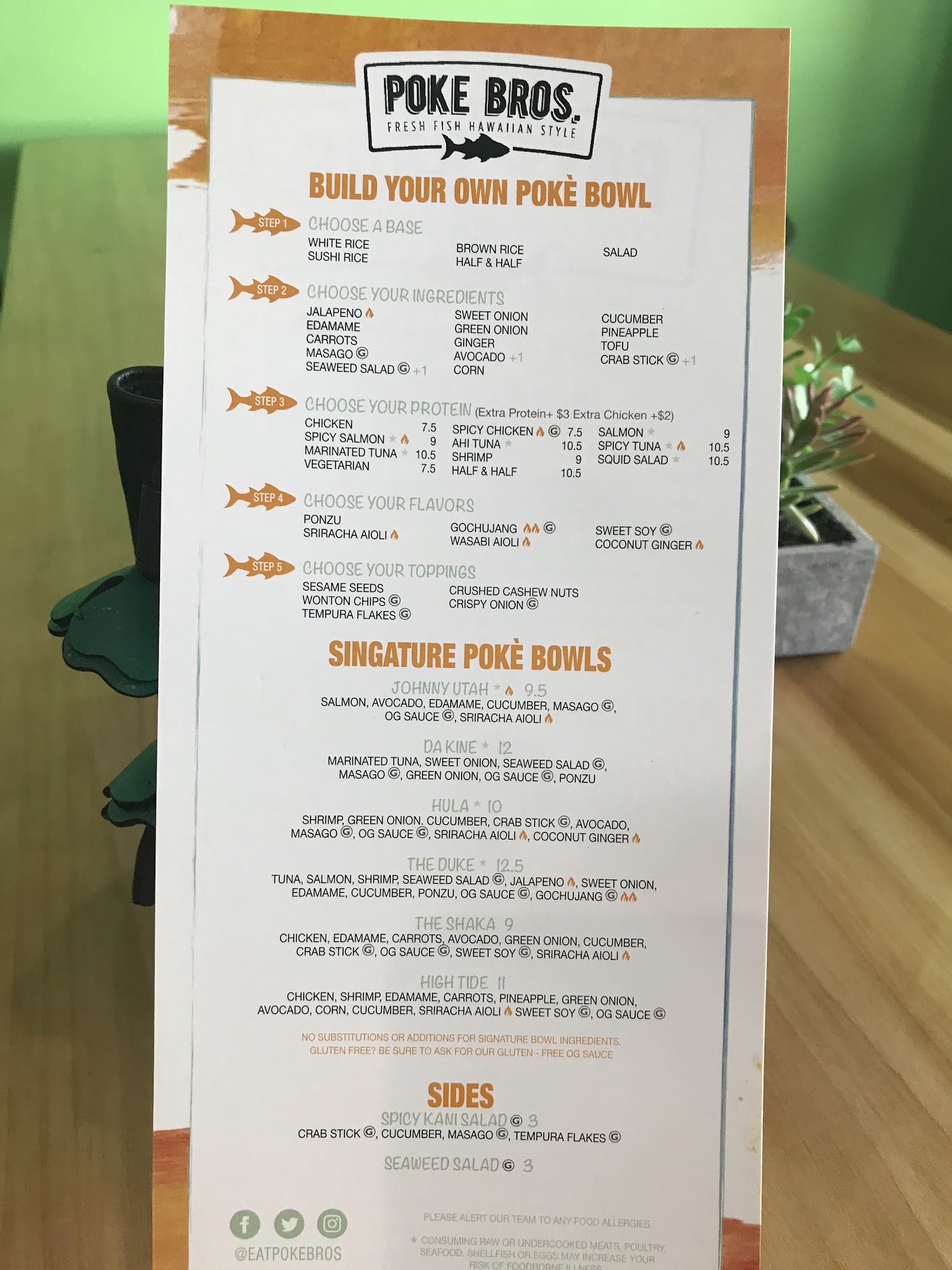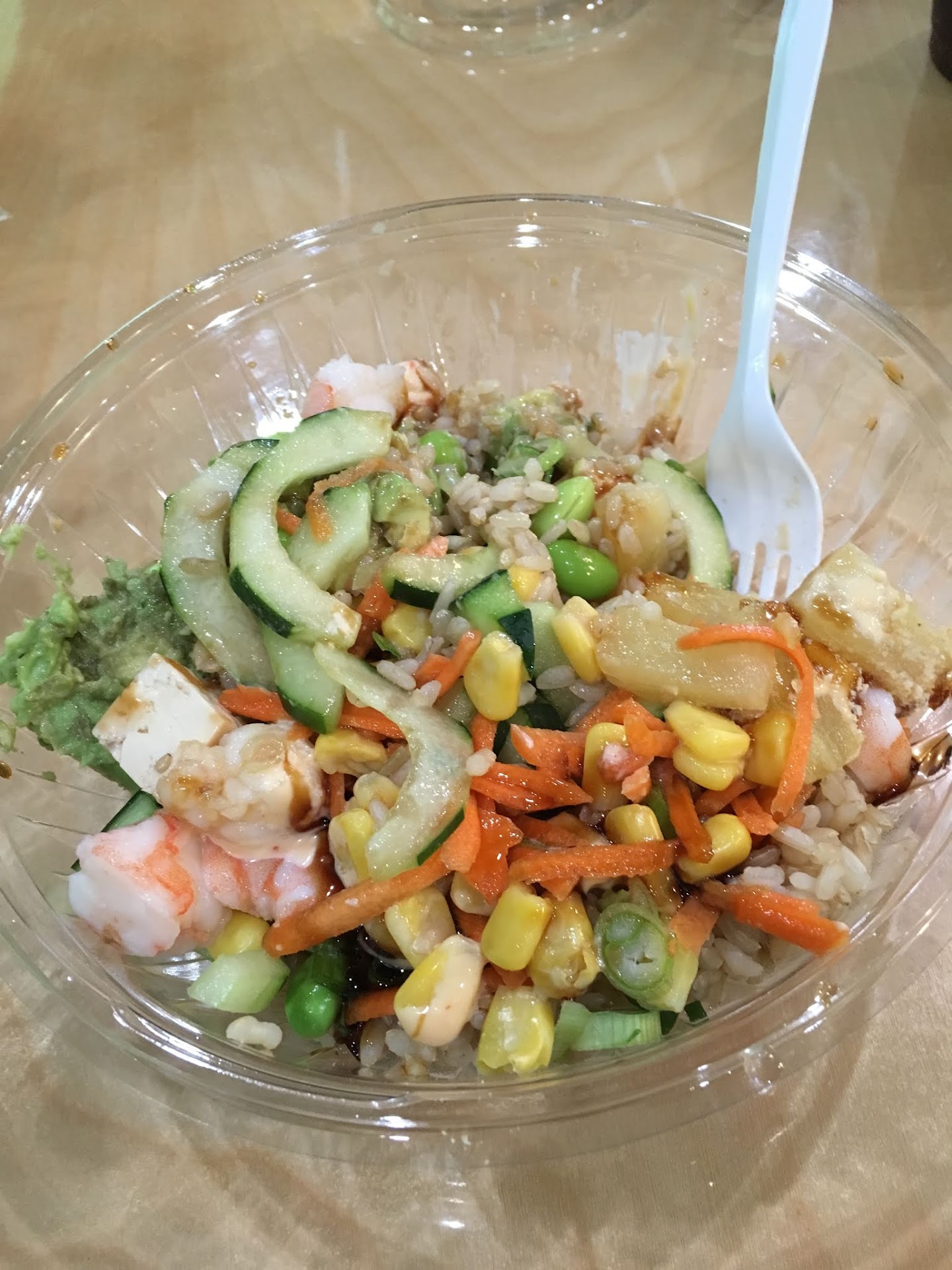 Read moreGreat Asian-inspired "bowl" concept with a healthy vibe! I am always on the hunt for great restaurants that I can get vegetarian/Vegan options at while my husband, the meat-eater, can chow down on some of his favorites. This place definitely hit the mark! If you love sushi you'll love the edamame, sea weed, shrimp, ginger, soy sauce, tofu, chicken, pineapple, aioli, etc toppings. They have about 10 selections of bowls or you can customize your own. The most expensive meal was about $11.50 plus a drink. Not bad for fresh, raw or cooked healthy options that leave you feeling refreshed rather than weighed down. Thanks for one more vegetarian option Poke...