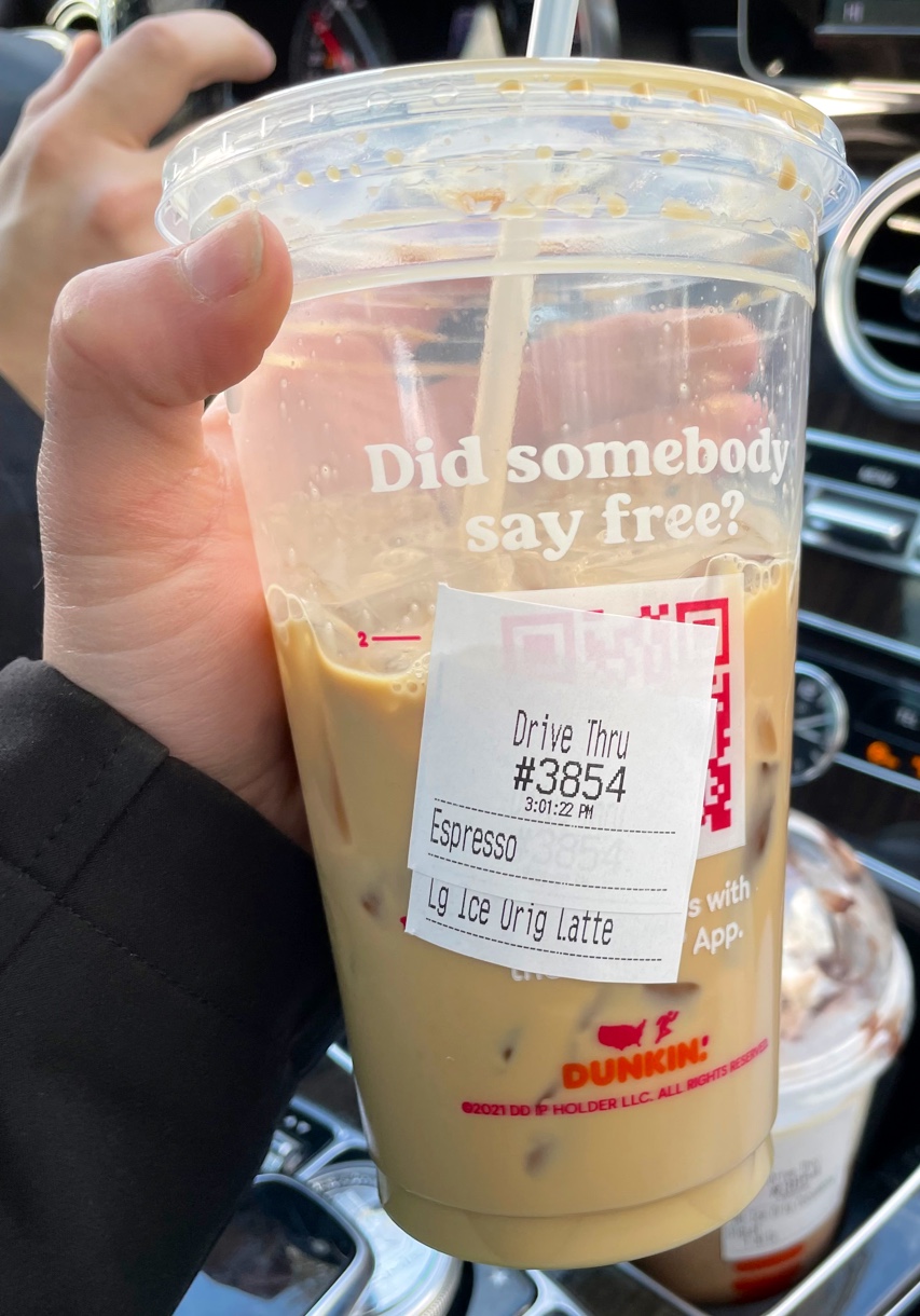 There was a long line for the drive through but that doesn't necessarily mean a long wait. Dunkin does a great job helping their customers move along quickly and efficiently. Still, I normally go inside, but by the time I get back outside the drive through line is gone. I know that Dunkin is "just a coffee shop", but they have a good size variety of drinks and food. Hot coffee, iced coffee, frozen coffee, regular cream, oat milk, etc. They have breakfast sandwiches on bagels, English muffins, wraps and more. And of course they have donuts and muffins. Mostly everyone is friendly there and usually wears a smile, therefore making the customers feel welcome and comfortable.