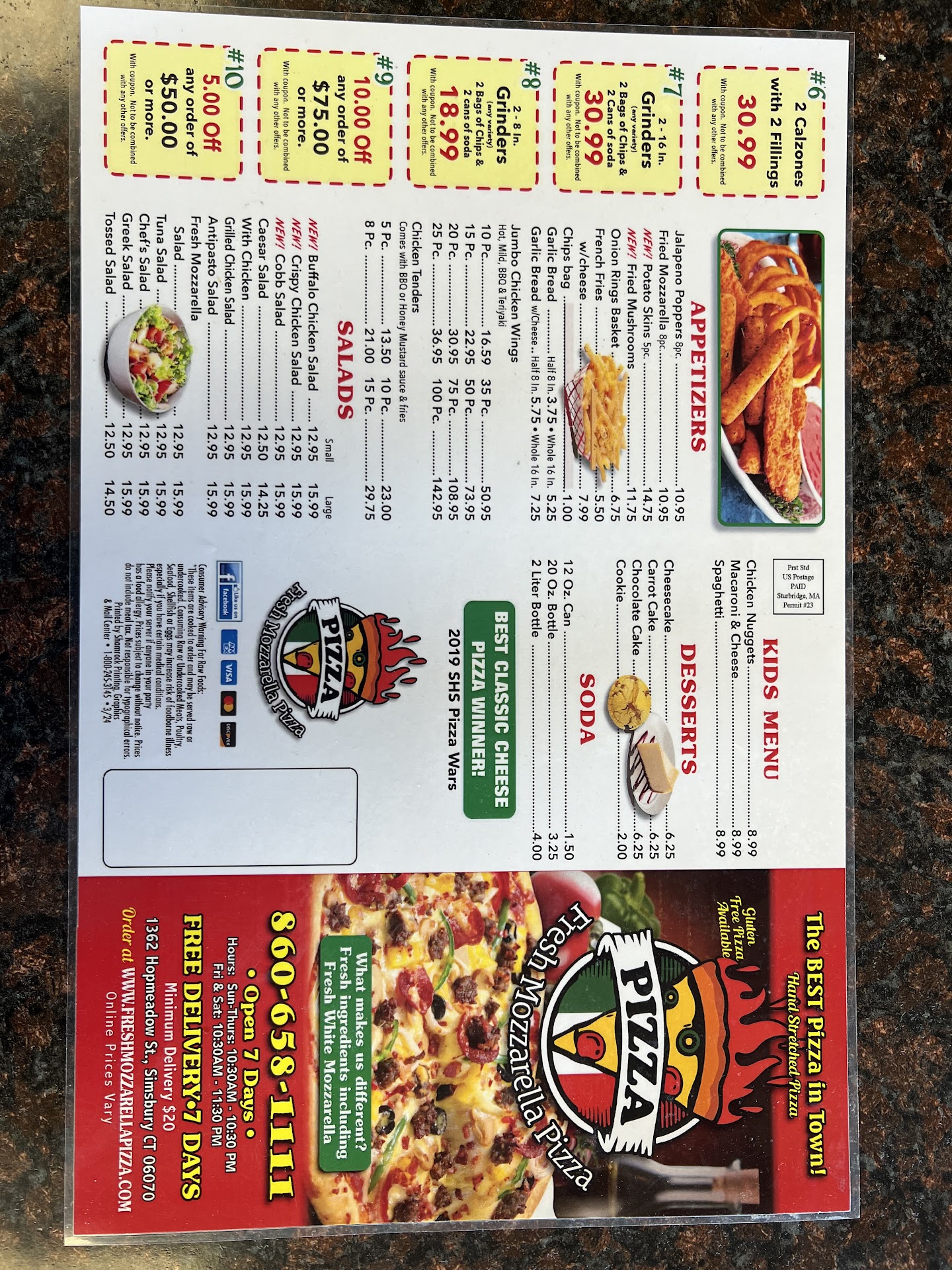 Read moreFive stars isn’t enough!! Fresh Mozzarella Pizza is hands-down one of the best pizza places in the area. My husband and I were in town for paramotor training and ended up coming back here almost every single day. We tried nearly every specialty pizza they offer, and each one was better than the last.