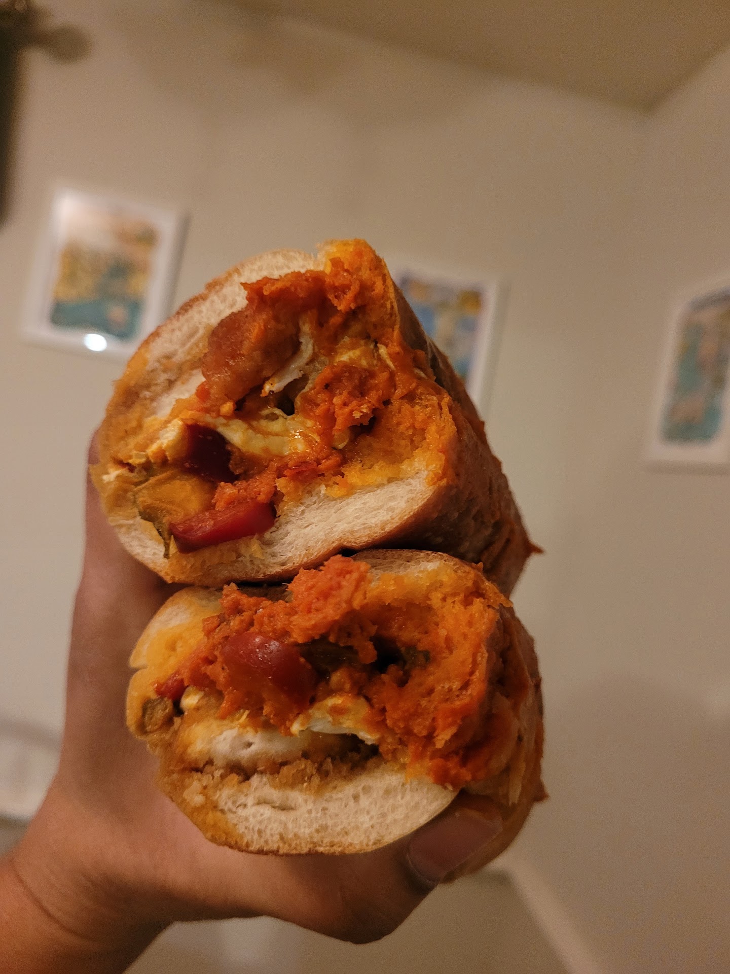 Finally we get our pizza and house salads and head home, all the while having a feeling that they would suck. We opened the box to see a wet 'thing'. It was completely soggy and had barely any cheese on it, let alone the green peppers and sausage that were ordered on the other side. The salad had an odd taste to it, and the only good thing was that they gave a lot of dressing to attempt to cover it up.