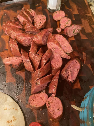 Since this would be the first time for inlaws to eat Butter's, I went for the trinity. I ordered 2 lbs of marbled brisket and 2 lbs of lean brisket. 2 lbs of regular sausage and 1 lb of jalapeƱo sausage. Finally 1 whole rack of ribs.