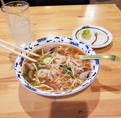 One of the best restaurants in Siouxland (there are three Sioux Cities in three states within three miles). I've never tried the Chinese food at Da Kao but all the Vietnamese dishes have been excellent. Prices aren't too bad. Service? It depends on who you get as a server. But these servers aren't really there to make friends, just to get you your food and a refill. It's "not bad" service. Their specialties are pho, vermicelli noodle "salad style" (which is sort of pho without broth) and a popular appetizer called Gui Cuoun. Gui Quoun is also called "fresh" spring roll: it's wrapped but not fried! And it's a version of an egg roll that's fantastic, cool and light. The most popular noodle dish (bun, not to be confused with the Chinese word bao which means bun) is bun chai gao. It uses fried spring rolls as the "meat." IMO, bun thit nuong, using pork instead, is better. Unsurprising is that pho is the best dish there. There's probably 10 different types: beef broth with flank steak, beef broth with tendon and tripe, beef with brisket, beef with meatballs, beef with flank and brisket. Then the pork broth different ways. One kind has shrimp. Another, chicken. About the vietnamese part of the menu: some Vietnamese restaurants have six dishes, like two appetizers, two pho, one broken-rice dish and one other dish. Da Kao has, besides 10+ varieties of pho, a dozen more dishes, with noodle dishes, rice dishes, meat dishes and a vegetable fried rice praised by the beloved Carrie Duncan Newman when she visited Sioux City. This place has never disappointed me. Finally, it never disappointed my wife, Carrie Duncan Newman. This was a Top Ten restaurant for her, probably Top Five if you only count Sioux City. She liked coming after church (it can get very crowded after church!) and getting sodá chónn, a sort of freshly made lemonade soda. Photos: Pho wasn't creeated a thousand years ago? Could have fooled me.