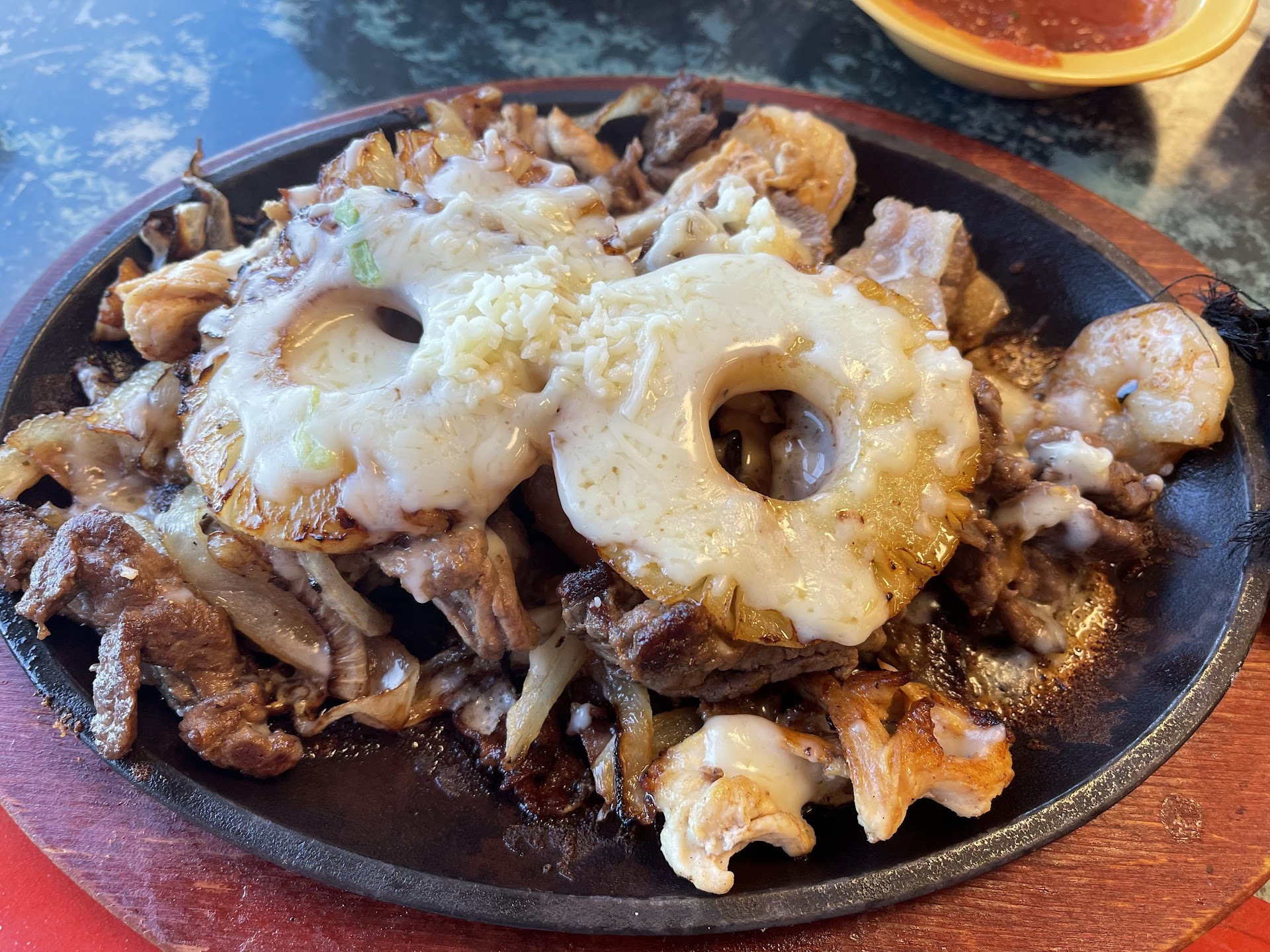 Today I got the Hawaiian Fajitas, and a margarita. Service was a bit slow. Took a while for my waiter to even get to my table. Once there, I ordered a water and the margarita while looking at the menu. Took a while for his return, and brought chips, salsa, & my water, but no margarita yet. I ordered my food at that time. I’ll say in advance. I think the waiter was having an off day, as I don’t usually have to wait like I did today. I informed him that my onions needed grilled dark, or I didn’t want them, and I cannot do raw(ish) onion. He said ok, but didn’t write it on his ticket, so I reenforced it again to make sure the cook knew, and again, didn’t write it down and just said “ok”. My food took longer than expected to arrive. In fact, some people came in behind me about 15 minutes after, and I watched their waiter put down their food and margaritas, before I got mine, and one of them had fajitas as well. About 5Min after that, my fajitas came out, but still no margarita. I’m beginning to think he misunderstood me and that I didn’t order one. Oh well, time to eat. Food was ok. Not quite as seasoned as normal. And, as I was concerned, half my onions under the food were not grilled very well, as I specifically asked twice for when ordering. He never did ask if they were grilled enough, or come to check with me during the meal at all. Once I was 2/3 or better through my meal, here comes my margarita. I had ordered one that had 2 different colors/flavors, yet it arrives as an orange, as opposed to yellow and red, because it appears it has sat for quite some time and melted together. At this point, I really don’t want it. I’m almost done eating, I ordered it more than a half hour ago, and it’s melted together and no longer what it should be when it arrives. Yet, I don’t know who’s fault it was or who dropped the ball, so I just accept it. For $11 for a drink, I would have expected to hear a “sorry this is so late”, or “did you still want this?”, or maybe even offering a discount on it. Anyhow, I’ve been here before and had better service, but today was not...