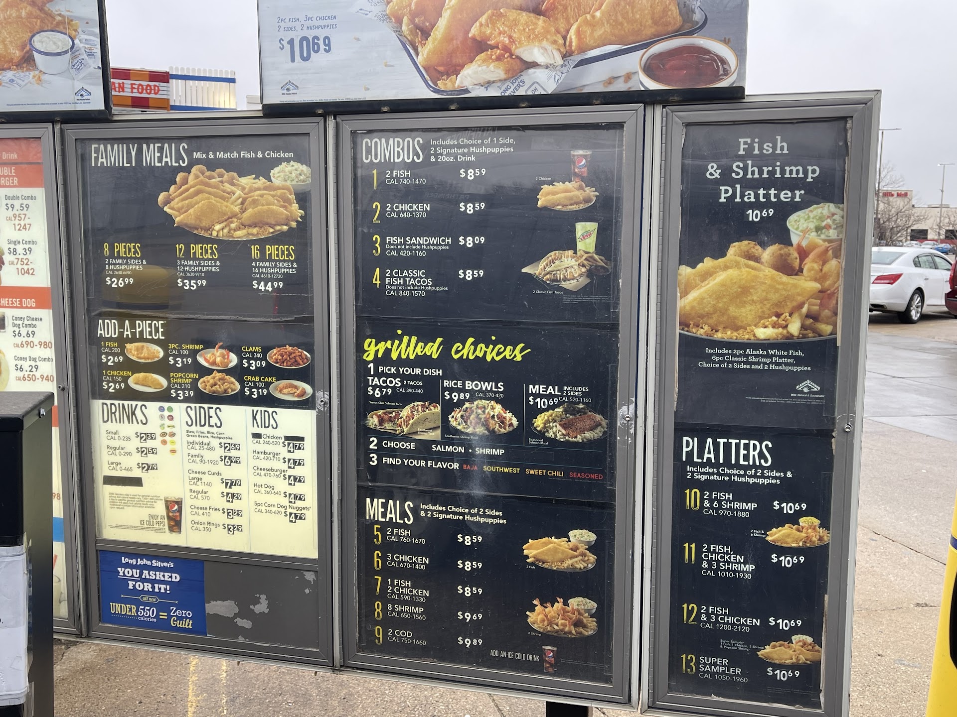 This is a combined operation for Long John Silvers, and also A&W. I am only rating for Long Johns, as I never order from A&W. Generally have pretty good luck here. As with all fast food, they are trying to predict how much they need and be ahead of the game, so there are certainly times when you are eating fries that should be fresher, etc. For the most part they do a decent job at providing food that is fresh and hot, and decent quality. There is a decent amount of condiments available, tarter sauce and malt vinegar for the fish, BBQ sauce for the chicken, honey for the hush puppies, ketchup for the fries etc. For being a fast seafood joint, they generally do a pretty decent job providing good service and food for the...