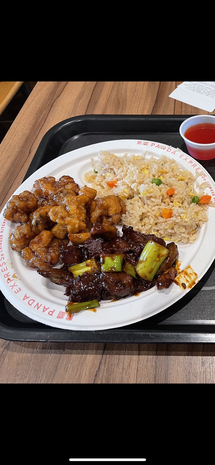 Read moreFood is usually good. But, they are Always out of several items on menu no matter when you go. Today, I ordered ahead via the app and ordered 2 entrees and super greens and a side of egg rolls. They were out of kung pao chicken but instead of telling me and asking what I wanted in place, they just gave me 2 servings of the other entree. The reason I order a plate and pay more is so I can pick 2 different entrees. This was to be split with my mom. I asked for chili sauce and hot mustard along with napkins and forks and got no napkins and no mustard. I decided to go back because of how much I paid, my order should be correct. Then, the first 2 things I asked for to replace the missing kung pao were also “out” and had to settle for what was “left”. This was 1:30 pm! They did give a little extra orange chicken for the inconvenience. Also, They were out of hot mustard!