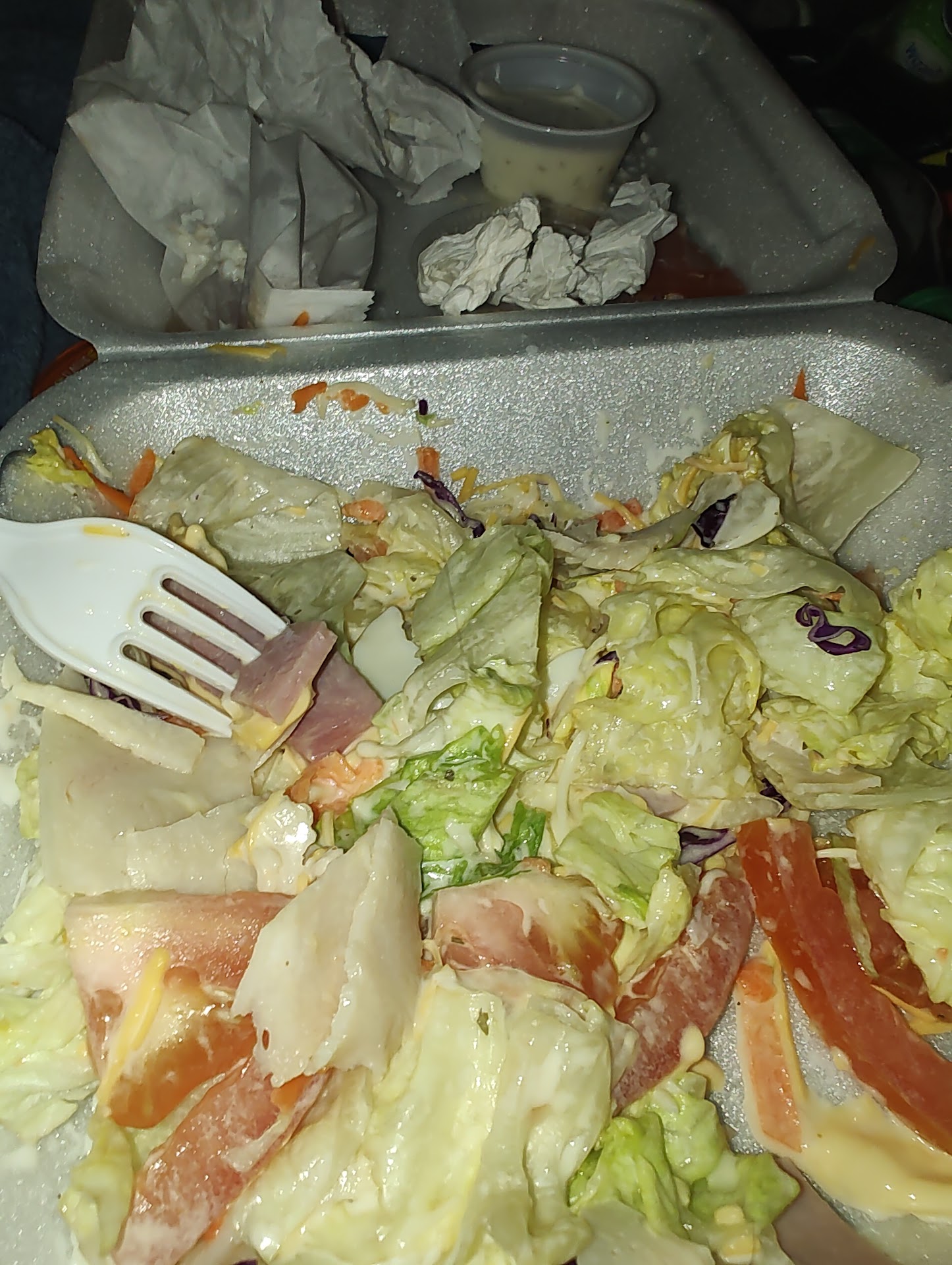 Read moreWe ordered a few items this morning.. chicken nachos, chef salad, and a burger. We live about 2 mins from this location. I've worked in the food industry. And there's there's some very rude people in out there.. I get it, but the food we ordered. Was just not good. So I tried to call them.. to ask.. I get things aren't always perfect. But the nachos after traveling for about 5min at most. And they arrived warm ish and soggy. The chef salad after eating 3/4ths of it I found a 8inch or so long hair stuck round a piece of ham. The dressing had a very weird cholonge like tinge to it.. not to mention the meat and cheese in it looked like it was taken off of day old sandwiches, I'm not super picky or rude so I attempted to pick it apart and eat it .. but it was just .. off ? Also they refused to do anything about it.. told my dad to get lost basically.. that's one way to treat...
