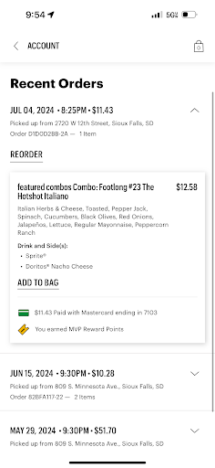 Read moreI stopped in at about 3:40pm today. I asked for a 12" steak, egg, and cheese; and a 6" bacon, egg, and cheese. The employee, Eddie, told me he thought they were out of eggs, but he would check. He came back and said he'd found 3. I thought there were 2 on a 12" and 1 on a 6". He let me know that it's supposed to be twice that. I asked if he could just use a little more bacon and steak to make up for it. He very rudely informed me substitutions aren't allowed. I said that shorting my sandwiches and having me pay full price wouldn't work either, so he'd need to do something. He was snotty again, taking a tone when he said "no, I don't". I just shook my head and said "that makes sense..." I ended up buying just the 6", and the other employee took over making the sandwich. When I went to pay, I tried to run my rewards card, and he said it didn't work. He asked if I had activated it. I said yes. He asked when I had used it last. I said I didn't know. He just shrugged and said "it's $4.93." And of course, the card machine automatically asks for a tip.. What a joke. The last time I was at a Subway before this (in Walmart on E. 60th St. N. Sioux Falls, SD) it was just as bad. Out of marinara sauce mid day, and the employee stopping repeatedly to scratch about in her dreadlocks while making sandwiches. Gross. This does it. We deserve basic common courtesy when we're giving you our money. We won't only be quitting eating at these locations, but we're not eating at Subway any more at all, and will be sharing our experiences on social media/ friends/family. Subway, it turns out you still have to earn business. If you have supply chain issues, figure it out, and for Pete's sake, pay your employees a living wage! You shouldn't be prompting customers for tips at your sub-par fast-food...