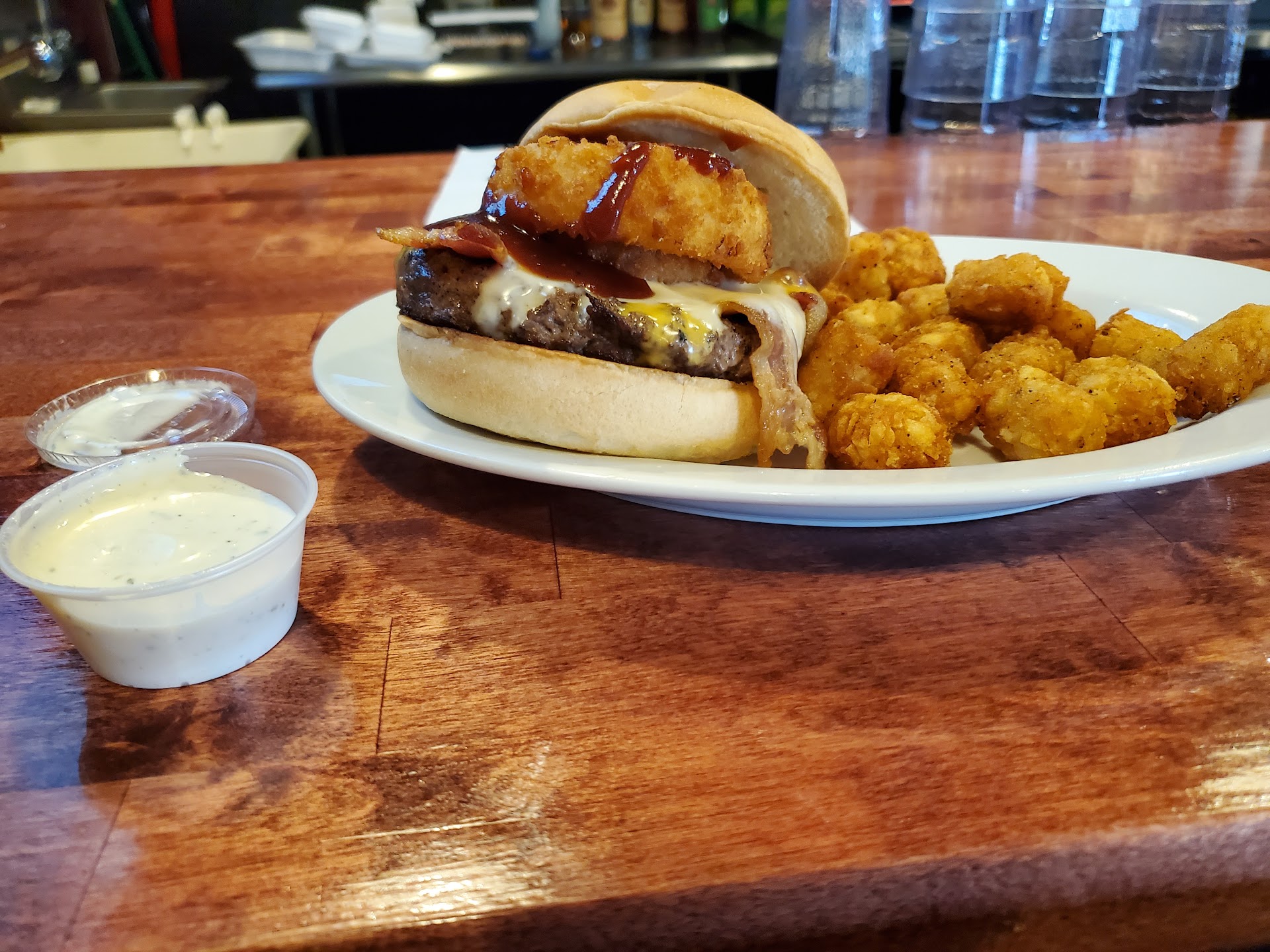 Read moreMy boyfriend and I were staying in town for the night and decided to stop here and grab some food and a few drinks. They were very busy and there was only one waitress on the floor, Amber. She did a great job balancing the rush. The food was amazing; I had a wrap and my boyfriend had a burger. Amber was friendly and had a great attitude towards the busy rush. I would recommend this place to anyone looking for drinks...