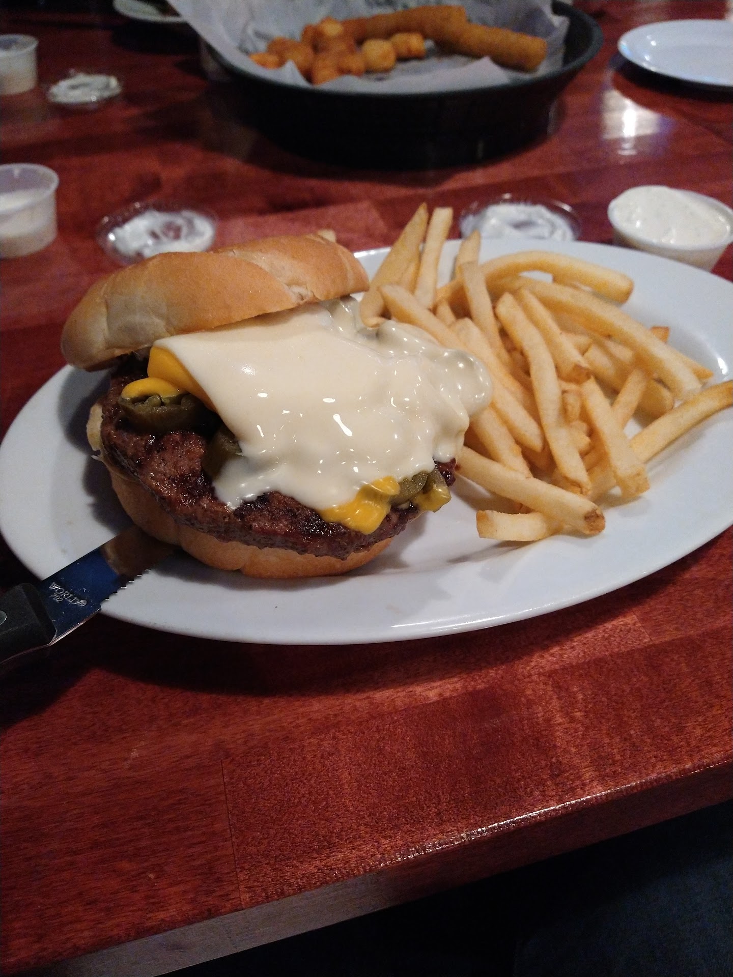 Read moreMy boyfriend and I were staying in town for the night and decided to stop here and grab some food and a few drinks. They were very busy and there was only one waitress on the floor, Amber. She did a great job balancing the rush. The food was amazing; I had a wrap and my boyfriend had a burger. Amber was friendly and had a great attitude towards the busy rush. I would recommend this place to anyone looking for drinks...
