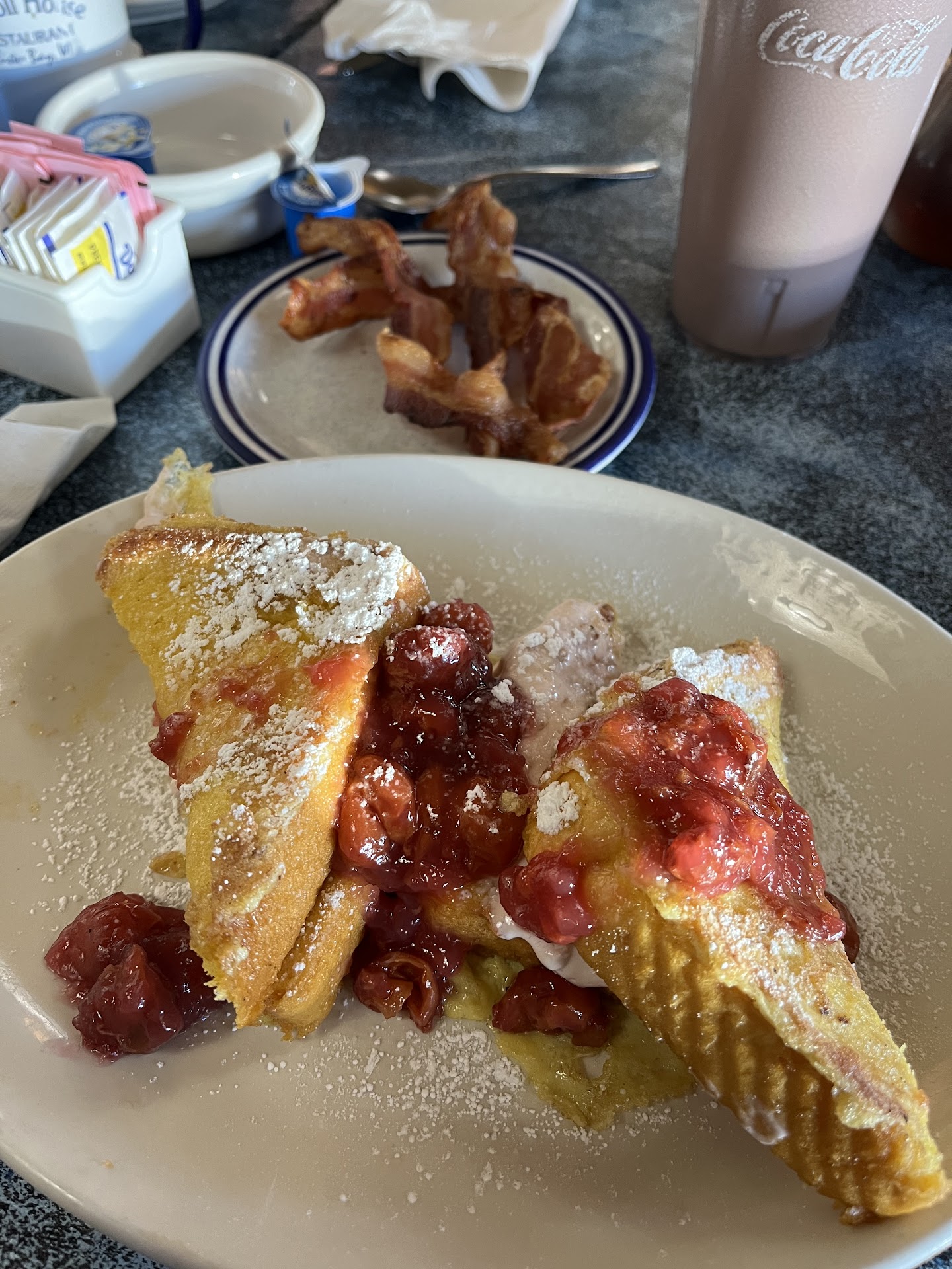 We had come to Sister Bay for Al Johnson's but they had an almost hour long wait, so we drove back in the other direction just looking for some place that had breakfast. Carroll House was the first place we saw. Stepping inside, there are Carroll House t-shirts for sale on the wall that read: "Just Say No To Goats On Grass" which was clever and obviously they are trying to compete with Al Johnson's.