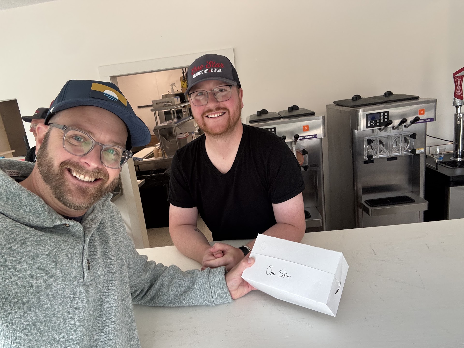 My wife and I were leaf peeping and we were driving down to 57 in sister Bay in door county which we came up to one star burgers and dogs .On the right side before sister Bay hotel and Scandinavian hotel before you hit route 42 stopped and got a standard burger which is a cheeseburger with lettuce onions mustard and ketchup cheese it was excellent as good as Culver's maybe better My wife ordered the plain hot dog with ketchup which is a quarter pound hot dog Vienna and comes with chips and chips with the hamburger and two drinks The food was excellent right around the corner from the 42 traffic jam it's a great place to get food good price and very nice customer service. And a very short Wait. We were very happy we stopped and we will stop again a hidden restaurant off of 42 and 57 stop there and you won't be sorry. Tell him...