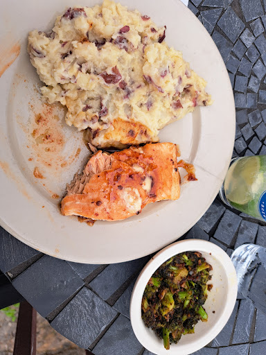 went in Sunday, with a friend, at opening time for lunch and they had a maple chipotle salmon dish as a special that slapped harder than any salmon dish I've had in my life. so perfectly cooked!! and the garlic mashed potatoes and roasted garlic broccoli was so fkn spot on that my mouth is watering as I write this (on a full stomach lol). I got the blueberry mule for a drink which was delicious and my friend and I split the Guinness buttercream cake (huge slice!!! we both couldn't finish it). can't forget to mention the stellar view that is the outdoor dining on the river ledge by the dam!!!