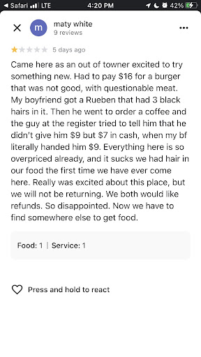 Got the Breakfast Burrito. OMG. Comes with Bacon and Sausage, bursting with fresh scrambled eggs and some accent veggies, and served with a red sauce that's got a little PUNCH! Could not even finish 1/2 of it. Just had the rest for dinner.