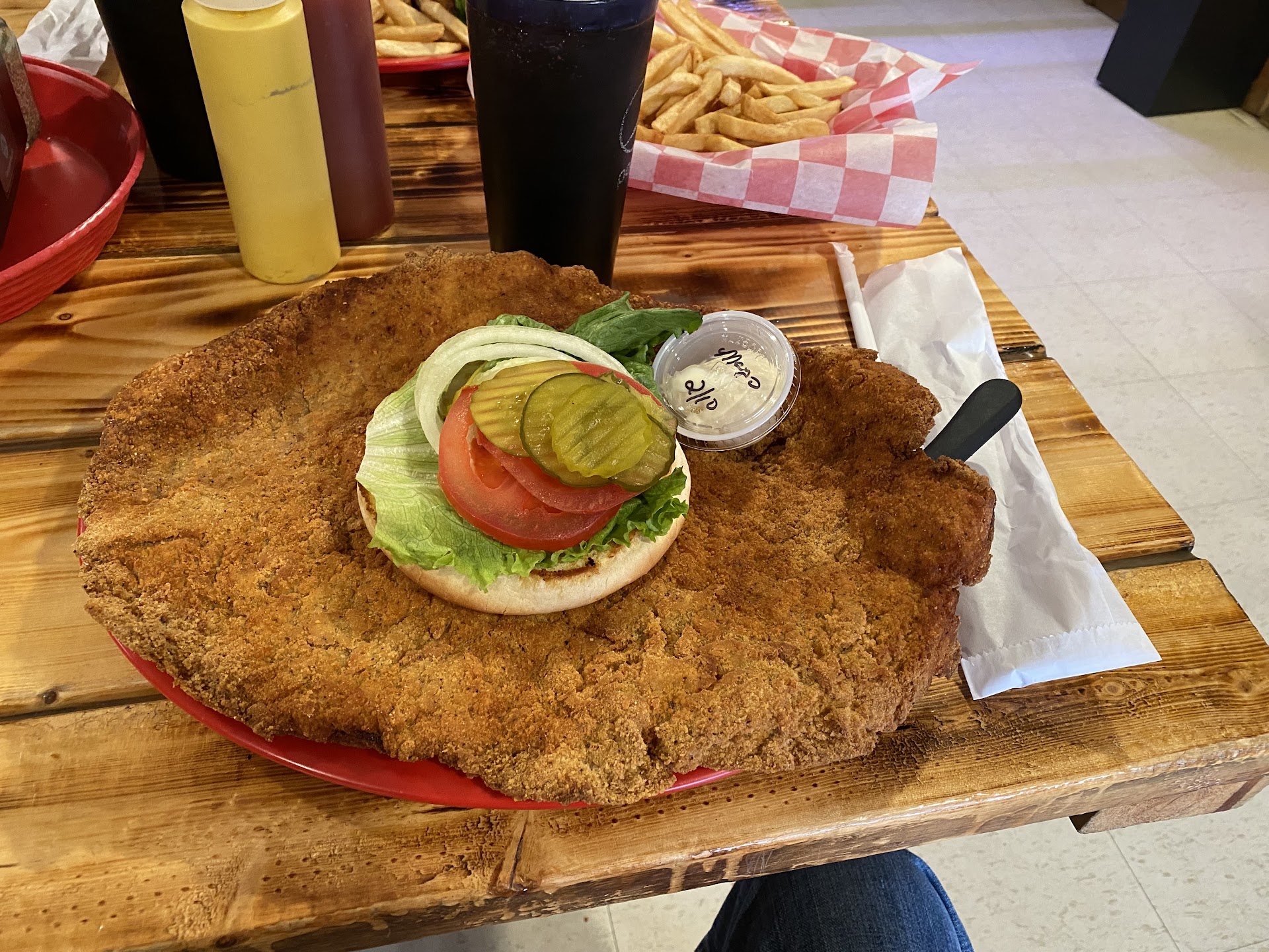 Read moreWe drove from Columbia this evening for supper. This is a small town diner and exactly what we were looking for. We got the Chicken Fried Steak Dinner, and the Tenderloin Sandwich (it's huge!) and both were very good. We also got the cheese curds and fried mushroom- the fried mushrooms were slightly cold in the middle, but overall we had a really good time and enjoyed our meals. The staff is very friendly. We also got some fried pies to go.. and they were incredible. The peach and strawberry rhubarb fried pies are perfect. Prices are very affordable and the drive was...