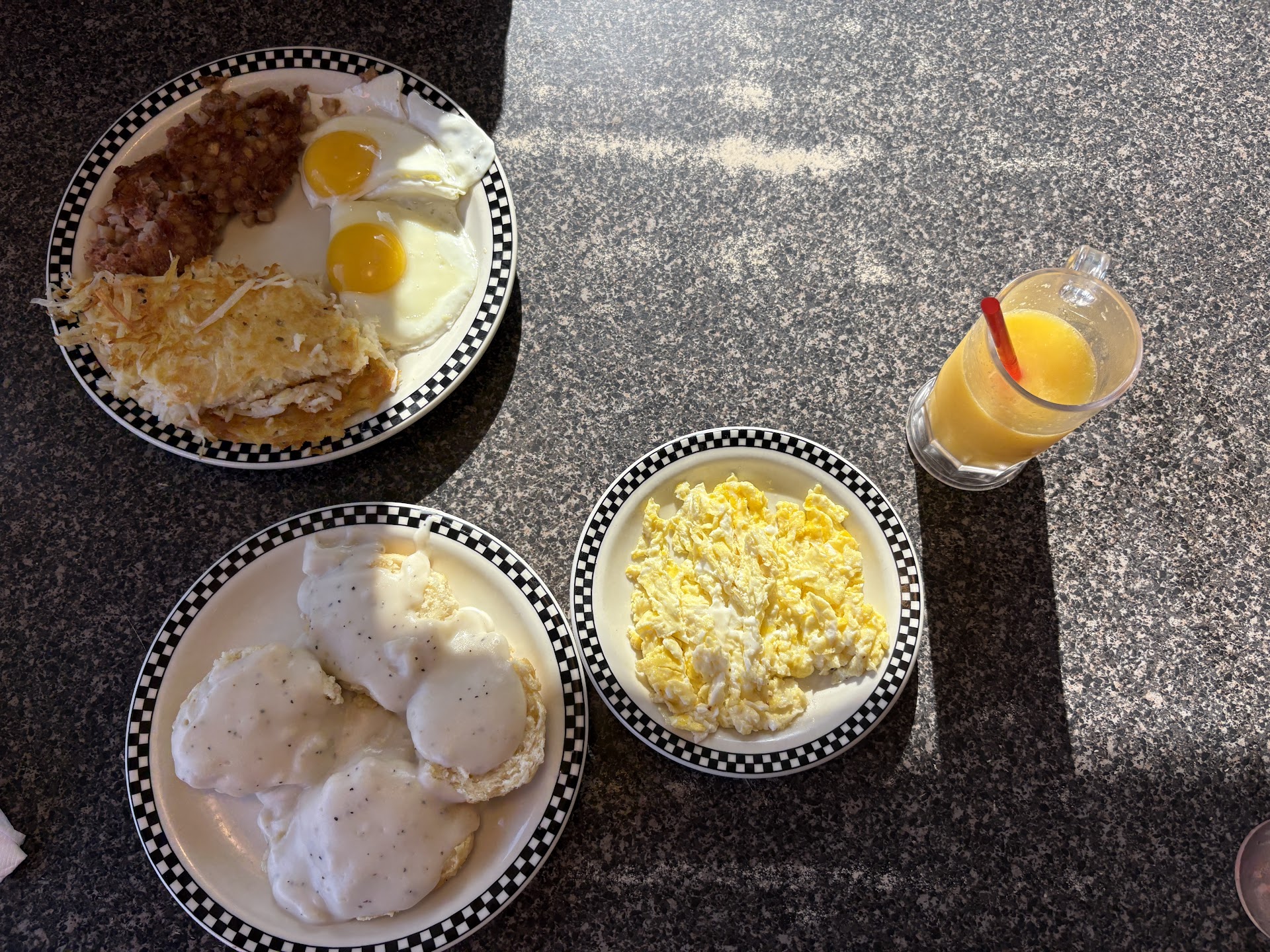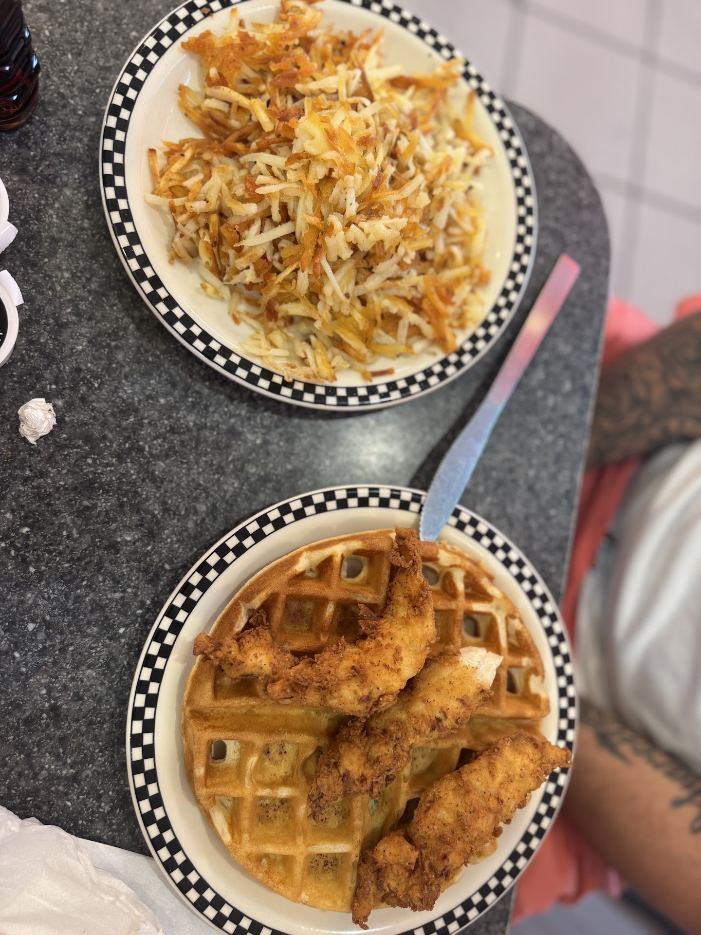 Best Breakfast We’ve Ever Had! We drove over an hour to eat at this adorable little diner, and it was absolutely worth it. Hands down the best breakfast we’ve ever had! I ordered the Cakes and Eggs breakfast but subbed in French toast instead of pancakes, and let me tell you—the French toast was unbelievably fluffy and delicious, and my eggs were cooked perfectly just the way I like them. Not a single thing I’d change. My boyfriend had the chicken and waffles with a double hashbrown on the side. His waffle was also super fluffy, the hashbrowns were amazing—crispy, golden, and flavorful—and the chicken was hot, crispy, and seasoned to absolute perfection. The atmosphere was warm, welcoming, and full of personality. Our server, Mrs. Lara, was the sweetest lady—so friendly and attentive. We were shocked by how fast the food came out, and it was clearly made fresh to order. To top it off, we had a little drink mishap when my boyfriend accidentally spilled his drink. Without hesitation, the staff brought him a brand new chicken and waffles meal just in case any of the drink had touched the food and even offered to move us to a different table. His replacement food was out in less than 10 minutes, fresh off the grill! We also noticed how efficiently they were cleaning and resetting tables right after guests left—super impressive and shows how much pride they take in running a clean, welcoming place. We left full, happy, and already talking about when we can come back. Highly, highly recommend...