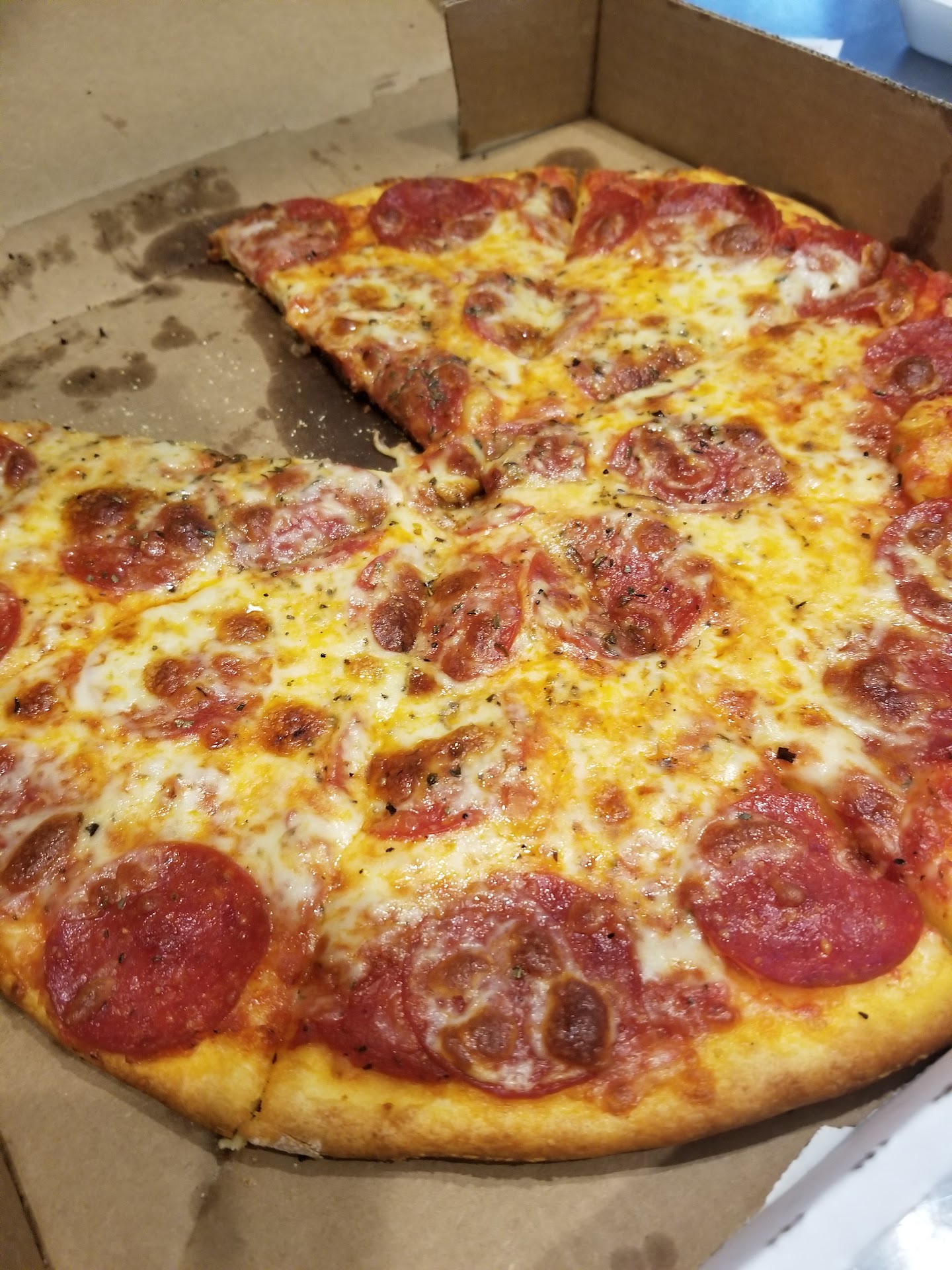 Ok, so I was starving today & really wanted GOOD pizza. I was told about M&M. I did a crazy thing in my hangry state, & paid the extra for Waitr...then twiddled my thumbs like a maniac because I was at work & had no choice. It was delivered by a very nice man (shout out to Waitr & Hal), a bit early & I rushed into the kitchen and started eating right from the box. Now let me say, upon first impression it really doesn't look like much. In my honest opinion it's almost like a frozen pizza in appearance because it's sort of a semi thin crust, but not really & it's sorta greasy & there's a blend of white & yellow colored cheese. Get what I'm saying? BUT, I'm so glad I have a level head, open mind & was starved (remember, I was already eating at this point). It was so good! I was very surprised. I loved that the cheese went almost to the edge of the crust. Nice touch. Toppings are pricey, but I realize their reasoning is due to quality. Ehhh...I guess peppers & onions are of the utmost quality & worth it. Glad Slidell has a good pizza place. My only disappointment was in that crust. I mean, it's good, but not the N.Y-bubbles-type, thin hand-tossed kinda crust, if you know what I mean. But again, I really enjoyed this pizza! I also got a cannoli. I adore cannoli! They're only $1 for a small one. A small is small, just so you are aware. Totally perfect though. You don't need to be unable to walk after your meal. I ate 5 slices of my pizza & my cannoli, just for reference....