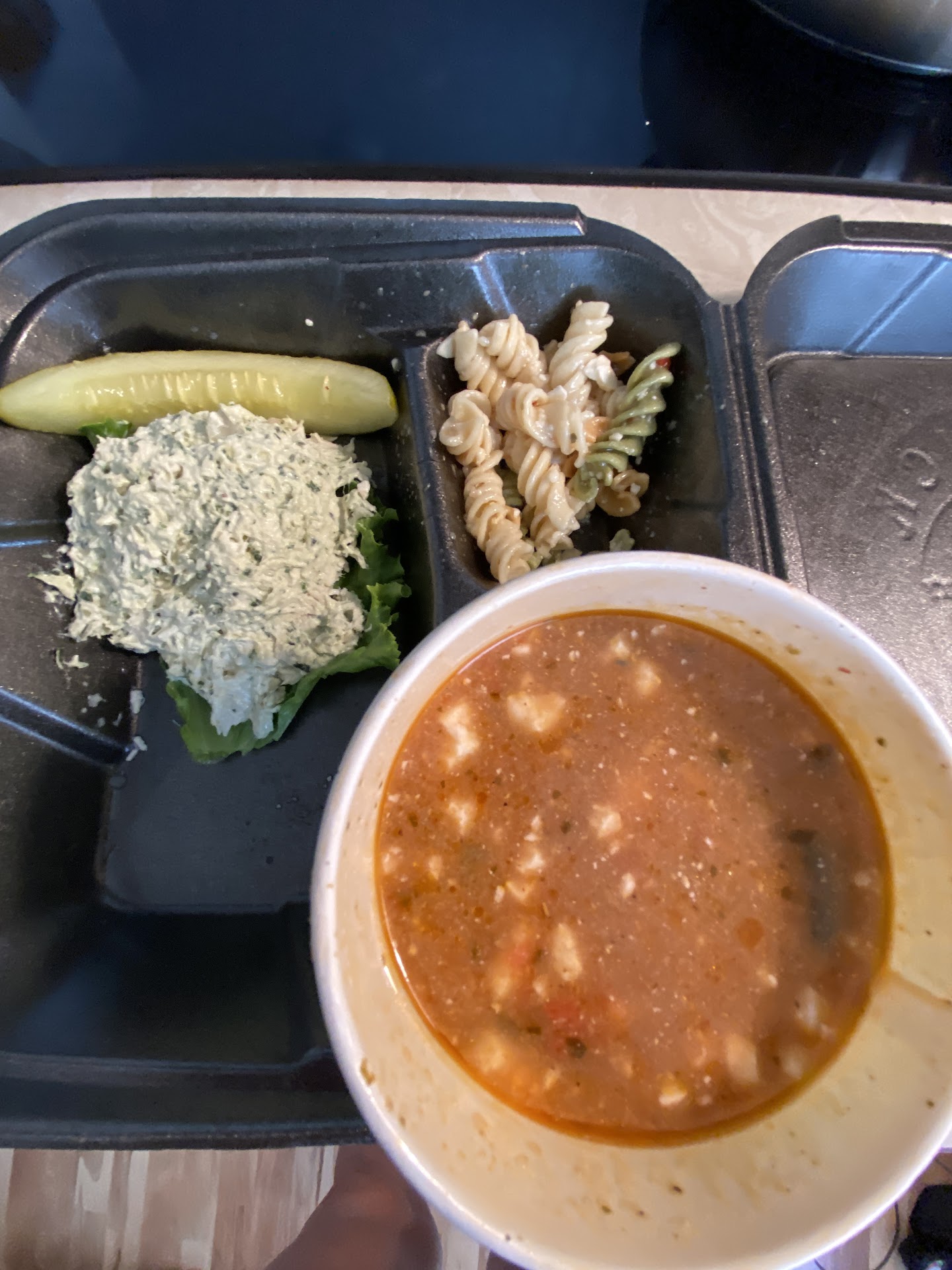 The Food The food is great. They have all different flavors of chicken salad. From original mix to spicy or even bbq. The balance across ingredients on each one is right on point. I always get The Chick which can put one of your scoops on bread or croissant, you can get a side or another scoop, and you can add a 3rd scoop for just $2 more. Worth it if you can't decide. The sides are pretty good. They were sold out of the Mac n' cheese, so I only had the Broccoli salad. It's really good, comes with bacon and cheese and some sort of very light mayo based dressing. My MIL loved the pickle that comes with it and I loved the cookie.