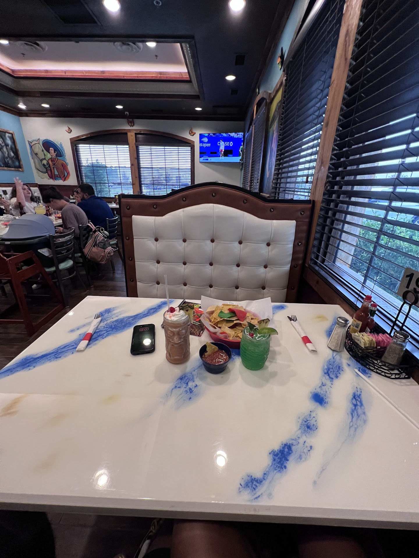 Hi. 1st time eating here. My last. I arrived before my son and his family and enjoyed sitting out on the porch. It is a pretty building, and a couple of gentlemen who are outside doing some exterior work were both polite. One up a ladder the other over seeing and just making sure everything was going well. Nicely done.My party arrived, and we went in. And it was downhill after that. The 3 employees at the host station did not address us at first. We waited. They talked.(To each other) after begins i Ignore my son , ask if there was a problem. Only 3 other tables were occupied. So it wasn't busy yet as it was only about 4;30. They did seat us (in a booth), plenty of tables available. The waitresses weren't nice or accommodating to get drinks or dips we ordered. 2 different types pluse the one they bring outas courtesy. We were not offered the opportunity to chose guacamole that is prepared table side. Didn't realize they offered it I have had it in the past, and it's a favorite of mine. The waitresses seemed angry. She did the bare minimum. We had to ask for any refilles and chips as the 1 bowl didn't work with 3 dips and 4 people. We couldn't get anyone's attention for refills, but a service person stood against the wall in the door way almost our whole meal 20 ft away But he never responded nor did the waitresses after she slammed our food on the table. It's not a good experience. We wanted to leave, However;my daughter-in-law had been unable to eat because my grandson was tired. And she spent dinner time comforting him. So she wanted a to go plate to box her meal in. Again, no help. She found one in the cabinet. No stopping by or checking on us to make sure we didn't need anything . Though there was wait staff visible around us. They didn't venture near our table after food was slammed on it. I do mean put down hard. The food was ok But the cheese quesadilla that we ordered for my granddaughter.Who is 3?And she loves cheese, was already cold inside the tortilla shell when delivered to the table.Oh and the kicker, we order sweet tea. The tea wasn't sweet . We ask and waitresses told us after she slammed it on the table to just add sugar to it. (It was cold Iced tea) Ya'll know how that tastes đrt? They didn't have root beer. It was a disaster outing I won't deal with again I love eating out with family. This was one of those times I didn't. But live and learn from lessons like this. I appreciate good service and don't repeat bad experiences. Marking it...