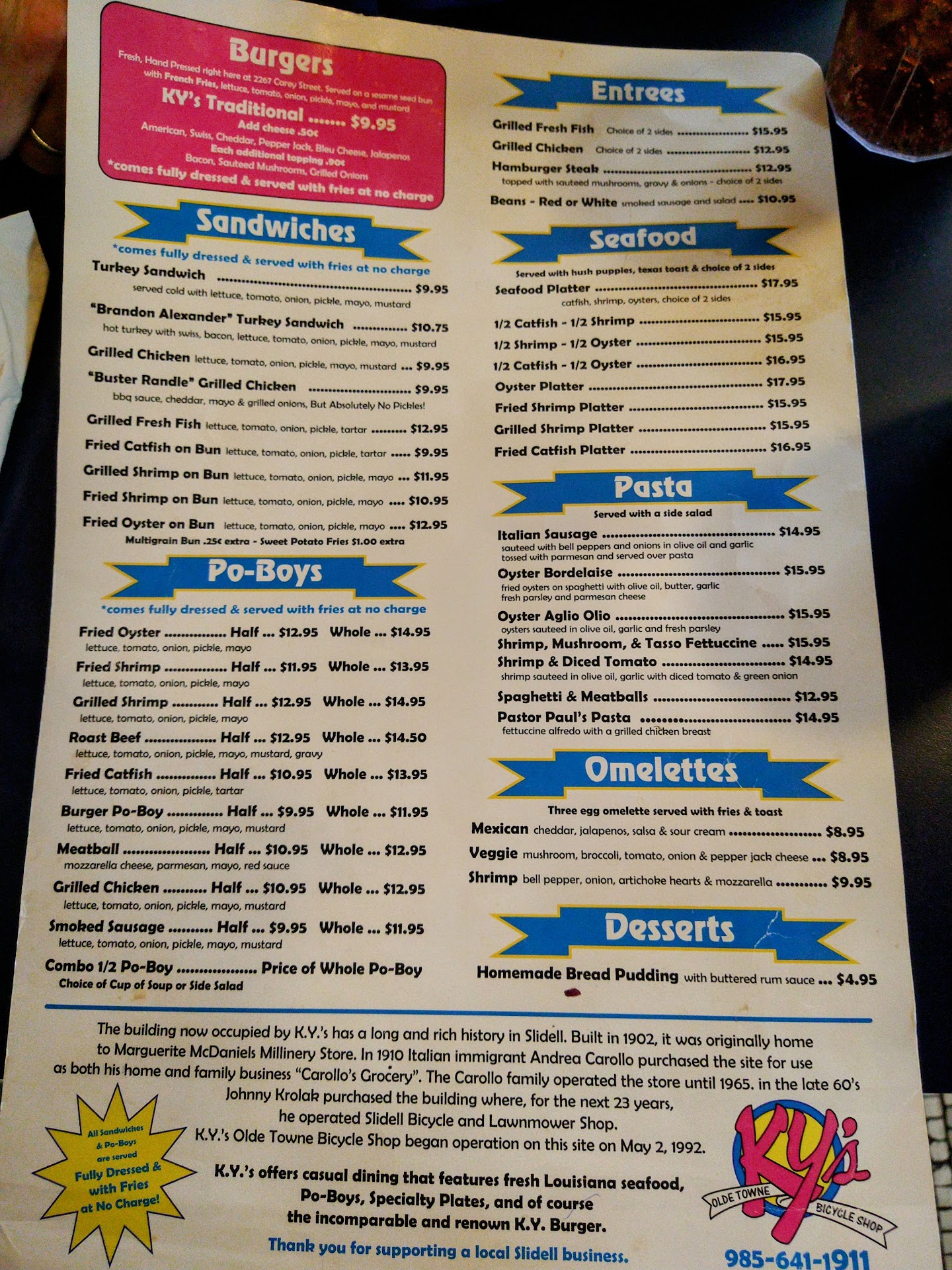 Read moreWe eat out more than we do at home. From frequenting Galatoire’s, Desi Vega, BR Prime, etc, to Janie Brown, Bonnie C’, Terry Lynn’s, T LeBlanc’s, SouthSide etc. We mostly try to do non-chain, non-big business. KY’s is one of our multi visits a week restaurants. Food is consistently good and people are welcoming, friendly and professional, This along with a great “old town” atmosphere that is comfortable and relaxing. Service has always been impeccable. Like most every industry these days, employees are hard to get and retain and we all just have to make the best if it. Even with these challenges and with the high number of customers that frequent KY’s, if you want a great meal at a great price, go to KY’s. Best moist, fresh grilled chicken we have ever eaten. If you like a hint of garlic, they serve “ HOMEMADE” house dressing that can go on any salad or as a dip, delicious! Salads have crisp lettuce. Awesome cheese fries and fried shrimp. You can’t go wrong. Give these small local businesses your business and patience. They are all trying their best to stay alive. Adjusting to no available workers sometimes requires unplanned outages. KY’s food is worth a little...