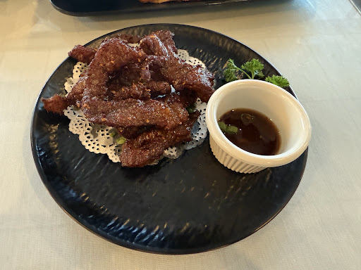 Stumbled upon this place using the backroad from the shopping area so I looked it up on Google reviews and took a chance. I grew up eating Thai food so i can be extremely critical. My mother is from Thailand and was an amazing traditional Thai cook. Let me say, the food was excellent! Although im a traditionalist, i appreciated the modern menu with subtle twists. The main thing about Thai cooking is flavor balance. Spicy salty sour sweet bitter is what we are taught by our mothers when we learn how to cook Thai. Whoever is cooking here has a good palette! My mother would have approved if she were still living and had i brought her here. I had something a little different from my normal. I always test restaurants with their Pad Thai. The pad thai was prepared just the way I like it, perfectly balanced but I wanted to try the "crispy) pad thai where it's made with crispy fried noodles so I told the waiter I'd like to try it but was concerned I may not like it so he suggested a half and half so I ordered that (pad thai with half crispy noodle) and I loved it. The other appetizers were great too from the crispy spring rolls, the thai steamed dumpling (shumai), and the tempura veggies were so light and crispy. We finished off the meal with the most amazing homemade coconut ice cream that I need to go back for! Do not pass up the homemade tropical ice creams to complete a meal (and I'm not even into sweets), my husband ordered it and I ended up eating half of his. So creamy and coconut-ty, rich and silky sweet but not to sweet. It was a perfect ending...