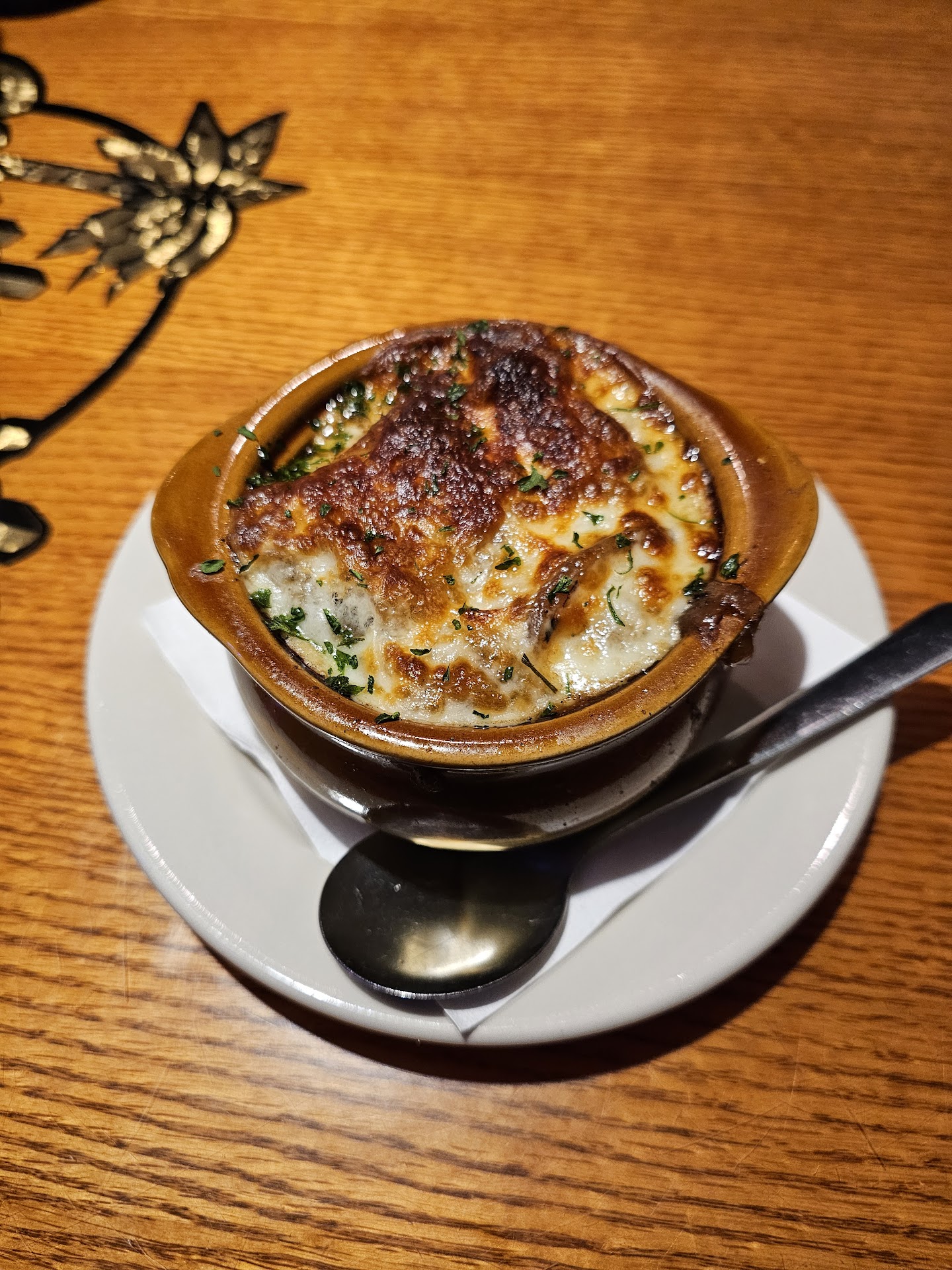 French Onion dip soup - they brought this in the cutest ceramic bowl. This soup was cooked perfectly, with the bubbly cheese melting down the sides of this cute little bowl. Cherry on top was that it was one of the best French onion soups either of us have ever had! It actually has onions in it!