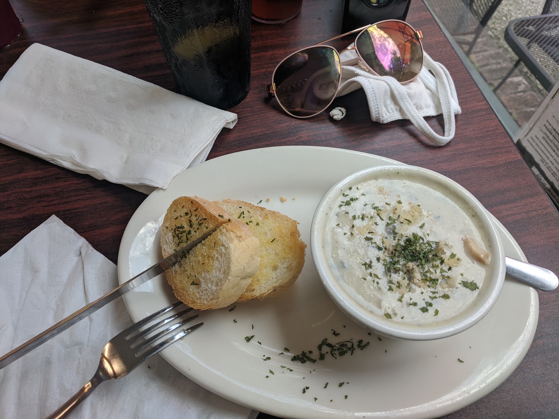 Read moreThis place has cute outdoors area with shade of the trees and umbrellas. Interior is nice but some work areas and shelves with supplies sticking out would be better off covered from customer's eye, I think. On the wall they had some handmade signs for sales, which is cute. Cafe offers broad menu with breakfast and lunch items. We tried soup of the day , which was creamy chicken mushroom rice soup. It was alright, I prefer smaller pieces of food, so choppy chunks of chickens weren't my favorite. The lady at the counter was nice and prompt ( seems like she was doing calls, serving and taking orders!) And she did it all nicely, politely and with...