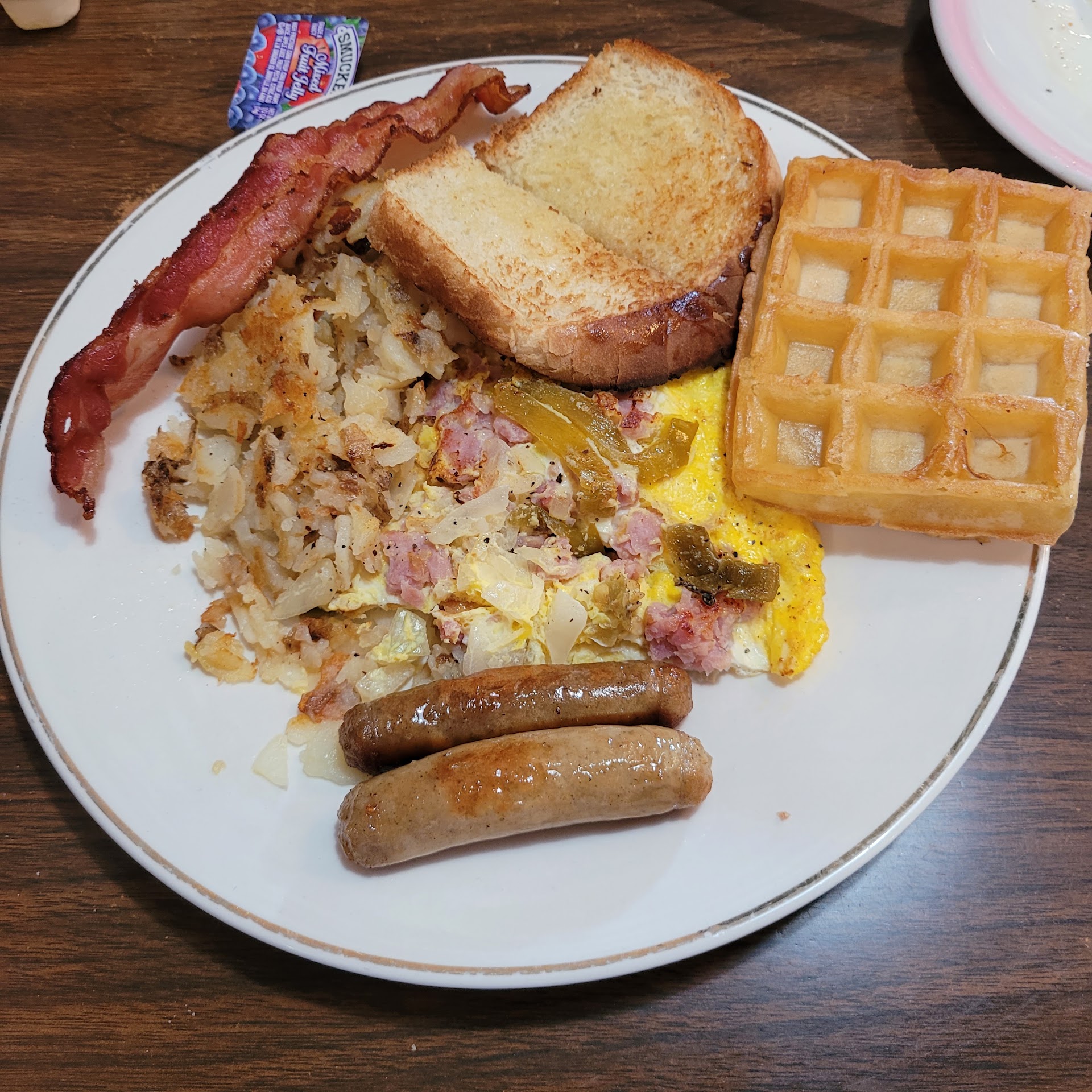 Read moreThe food was decent and was a good price. The server was very kind. The only thing I had a problem with was the woman who sat us and worked the cash register. I was with a friend and we were just going to add our bills together to make it an even $10 with tip. I asked the woman if we could put the two checks together and she said “add it up.” I didn’t hear her at first so she then repeated herself rudely saying to add them up because she needs to know the total. So I just grabbed my calculator really quick because I already calculated our total but wanted to double check. She then was getting frustrated and said no don’t use that, just add it up. She then continued on saying that I am in college and this is embarrassing that I took my phone out. She said I should never do that for an internship or a job interview. Meanwhile I’m just standing there in a breakfast place just wanting to pay. She was really rude and my friend and I were just...