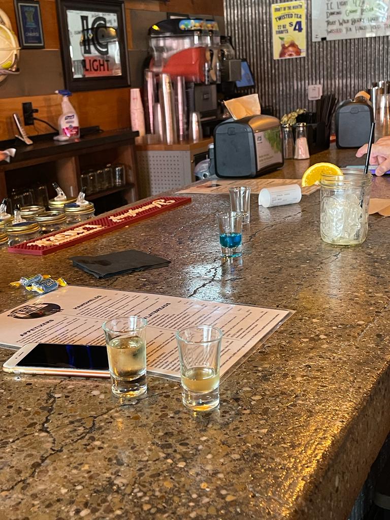 Fri June 23 While driving to Pittsburgh from Grove city, we checked out some small towns along the way. We came across Steel Mill Moonshine in the adorable town of Slippery Rock. It was Completely unexpected to find a place like this in what I thought was a little hamlet, but turned out to be much more. Steel Mill was our only stop in town – and it was well worth it. First, the building is historic and beautiful – an old converted post office right in the heart of town. Steel mill is the purveyor and craftspeople of fine Moonshines and moonshine based cocktails. The owner was very nice and happy to be of service to early daydrinkers.