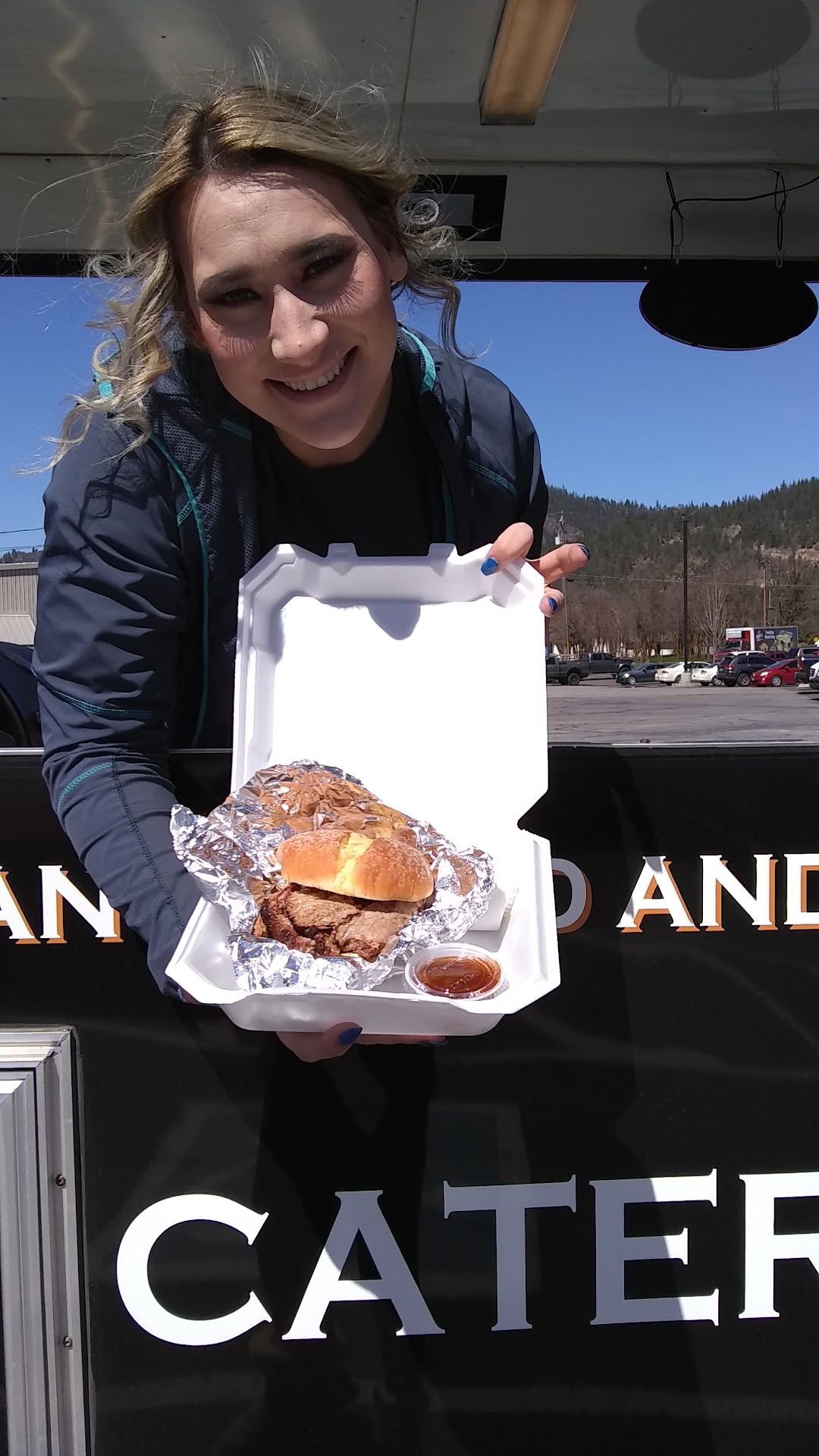 Read moreThey are open Wed.thru Sat.but remember they close when they run out. The old Union Hall across from Yokes in Kellogg. They have a nice new truck. I was glad to see a BBQ place open here. I love brisket , usually get at Arby's. Little tip for ya, the one in Sandpoint is more generous than the CdA.😋 It was busy. They get lots of called in lunch orders. Ask for a paper bag or bring a reusable tupper ware. The lady was nice enough to pose for me with my brisket san. The thing I did not like was the tip board being handed to me. U feel pushed into tipping and when you get no table service tips are not req.d. Waitresses need tips ,the pay is so low. They have that train car trailer to paybfor tho so pay extra if u want to...
