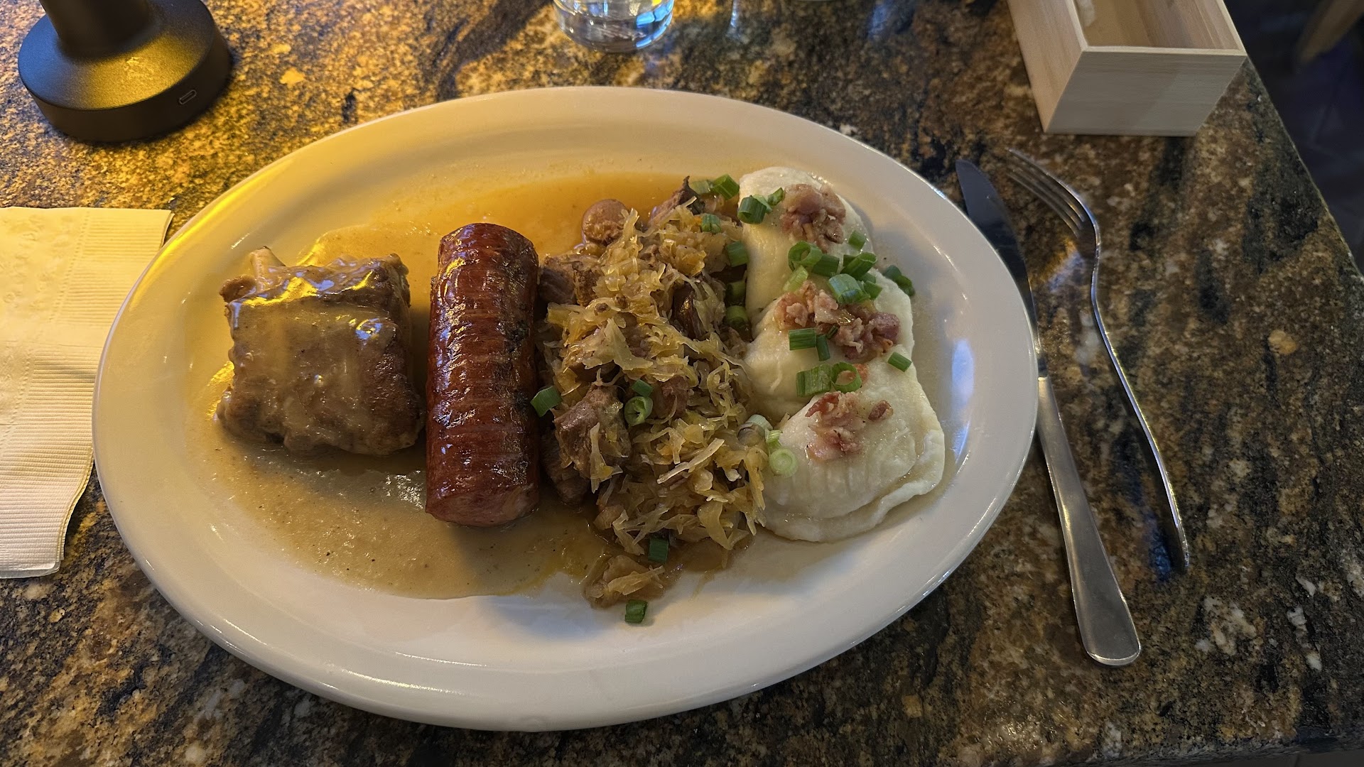 Read moreThe decorations are so nice. The atmosphere was great for our family of three. The prices were on par with other reviews. The amount of food is on the larger side. I got the bistro pierogis. I ate them with a little of the their pulled pork. They were delicious on their own though. The meat ones have the pulled pork in them. I highly suggest them. Burger came with two juicy patties. The cole slaw comes on the pulled pork sandwich. The pork isn’t a smokey flavor. Just a nice tang. We don’t live in the area but will suggest this...