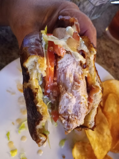 6/30/24 Food was excellent. We sat by the kitchen n cud see the chef n food being prepared. Everything looked great and was done with care. Delicious large pc of seasoned meat on my chicken bacon ranch sandwich. (See pic) Great ranch dressing n pretzal bun. Great slaw too. I swear the fried chicken in the wife's salad was hand-breaded n tasted far better than any premade frozen garbage. Service was pretty good despite they were packed n busy. Will...