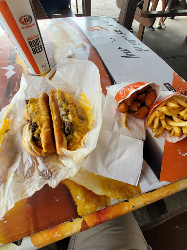 Read moreFirst time eating here and boy.... I was super disappointed. I have to give the good and the bad. First off hats off the the waitress Hannah who was on point and a great waitress. I feel bad she is working at this establishment. Ok let me begin with the food. The burgers are waaaaaaay....over priced and tiny. We ordered two burgers the double cheese with bacon and the papa burger. Both burgers were straight trash. The lady who was the cook was so lazy she microwaved both burgers and tried to pass it off like she made them fresh. The cheese was straight obliterated and my girls papa burger had soggy lettuce and tomatoes that were piping hot with the bun. The bun was burning our hands when we actually attempted the eat this monstrosity of a wreck burger. Now let's also talk about the false advertising of onion rings on the menu pictures. The onion rings looked official on the pictures like the would have a real ring of onion under the batter. NOT!! Straight minced onion. Like the manager ran out of the real good onion rings and replaced them with some knockoff Burger King onion rings,straight trash! If you decide to go here remember only get the root beer floats,shakes and chili cheese fries. We did like the chili cheese fries and my only issue is they need to get rid of the beans in the chili or at least let people choose if the want chili with meat only or with beans. I'm giving this place 2 stars because the peach shake was good and the chil cheese fries saved my pallet. Message to the owner step up your management of this place because you have cooks who are cutting corners and being lazy and giving your establishment a bad name Mr. or Ms. A&W root beer owner. "Literally microwaved burgers!!!" Come on now. I know Covid has set businesses back but your cooks are ruining your restaurant. If corporate comes and does an undercover boss your going to feel it!