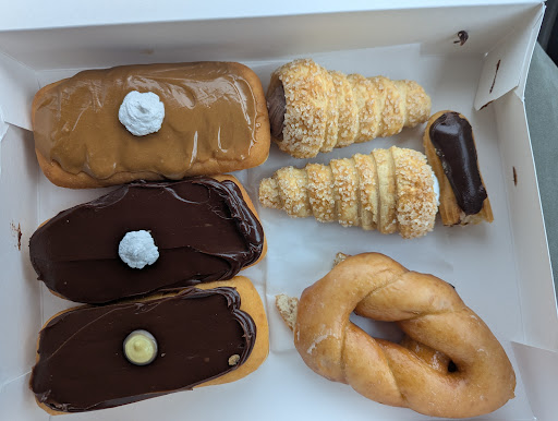 Ā Ā Ā Read moreThe cream filled croissants are the GREATEST. Best in history!! The fruit filled, not so much. Fruit filling kind of tasteless and corn syrupy. Red velvet cake - very dry and spongy, cream cheese frosting a bit sweet. Eclairs didn't look fresh or large enough to try. They were actually kind of sweaty sitting in the case, only about 1 1/4" in diameter (typically a good eclair is just a little fatter - this was a cross between a minineclair and a regular eclair). Long John's - EXCELLENT Bavarian creme filling- the yeast donut part, dry. Kind of like day old Dunkin Donuts. Creme filled cookies - excellent cookie AND excellent filling, but together the cookies are too hard for the soft filling. It all squeezes out in the first bite. Cheesecake - only tried the white chocolate raspberry, usually our favorite. We've tried quite a few in our lives!! Not much raspberry at all, cheesecake was "OK", but not the cheesiest of cheesecakes, more of a white chocolate dessert. Overall they win on presentation and the creme filled croissants. I'll be back many times. Hopefully this will be taken constructively as that is the intent of the...