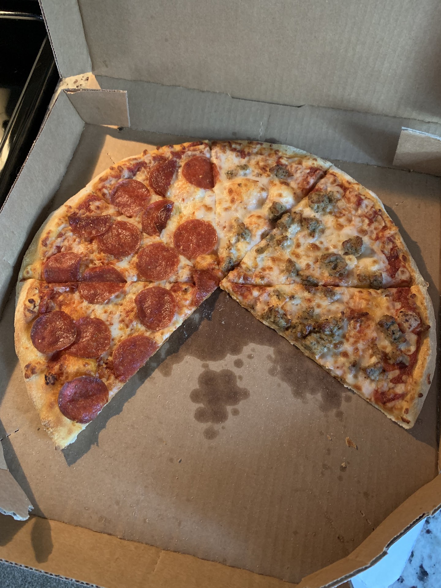 Read moreOrder the usual 2 medium pizzas which cheese, pepperoni & hamburger with instructions lightly toasted.