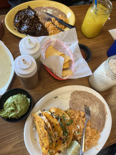 So, we proceed to go find a place to sit. The only table available at the time, was a larger booth, which was filthy on top and under. We wiped off the table and sat and placed our number out and waited. After about 5 minutes, we got our chips and salsa and queso and guacamole. A few later, a waitress comes by and asked how we liked everything. Told her so far, so good and she replied great, and took our number and said enjoy your meal!! Wait, what? We had no food!! My wife had to chase her down and get our number back to get our order. So we munched on our chips and wait. And wait....oh yeah, and wait some more. I get it's a Friday night and busy, but 20 minutes has passed and no one has even stopped to see if we needed refills of anything. We flagged down another waitress and asked for refills of chips and drinks. Finally, a few minutes later, my meal arrives. Just mine, not my wife's. And it looked straight out of a can. No filling to the enchiladas at all. Beans had no flavor. Rice, eh. We had to stop the waitress and ask for my wife's meal. She comes back and explains that they forgot it. The meat had absolutely no flavor at all, and fries were cold and stale. We decided to leave at this point. We could've gone to El Toro Viejo and gotten a way better meal for less money. This was a terrible first impression and sad to say, despite all the great reviews, we won't...