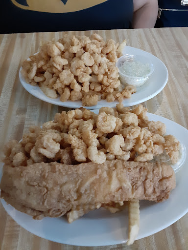 You are greeted when you walk through the door and then you hear, "hey, it's your turn to seat". The waitress was wearing far too much perfume and did not bother to bring out any hush puppies while we waited for our food. The food came out quickly which was a plus. My son got the Captain Smith's Platter which consists of fried flounder, shrimp, oysters, scallops and devilled crab with fries. I got the fried choice of three with shrimp, scallops, oysters and fried okra. The okra was overcooked to the point that some of it flew out from under my fork. There was one whole oyster and four small pieces of oyster There were four "scallops" all perfectly uniform in size and shape and probably over a pond of popcorn shrimp. The food was not terrible. There were three hush puppies on the bottom of my plate and they kindly provided us with whipped 44% vegetable oil change that did not taste anything like butter. My 13 yr old, of course, was very happy with all his food because there was A LOT of it. He ran out of drink for a while and I ended up having to go behind the waitress station to get my own take out container.