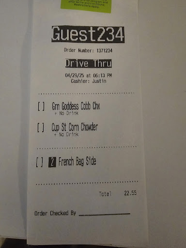 My second experience was dining in. Our cashier was Nazaree and she was incredibly rude. She was generally unfriendly and when my partner and I ordered our soups, she did not ask what sides we wanted. I had to be the one to ask her if we had the option to choose a side. If I didn't ask, what would we have even gotten? I ordered a Strawberry Lemonade from the frozen drinks menu, and she keyed it in incorrectly and wound up giving me a fountain cup. I asked "Am I supposed to get the frozen lemonade myself?" and she immediately got defensive saying I ordered regular lemonade. The menu says "Strawberry Lemonade". She made it seem like too much of a bother to fix it so I took the cup and left.