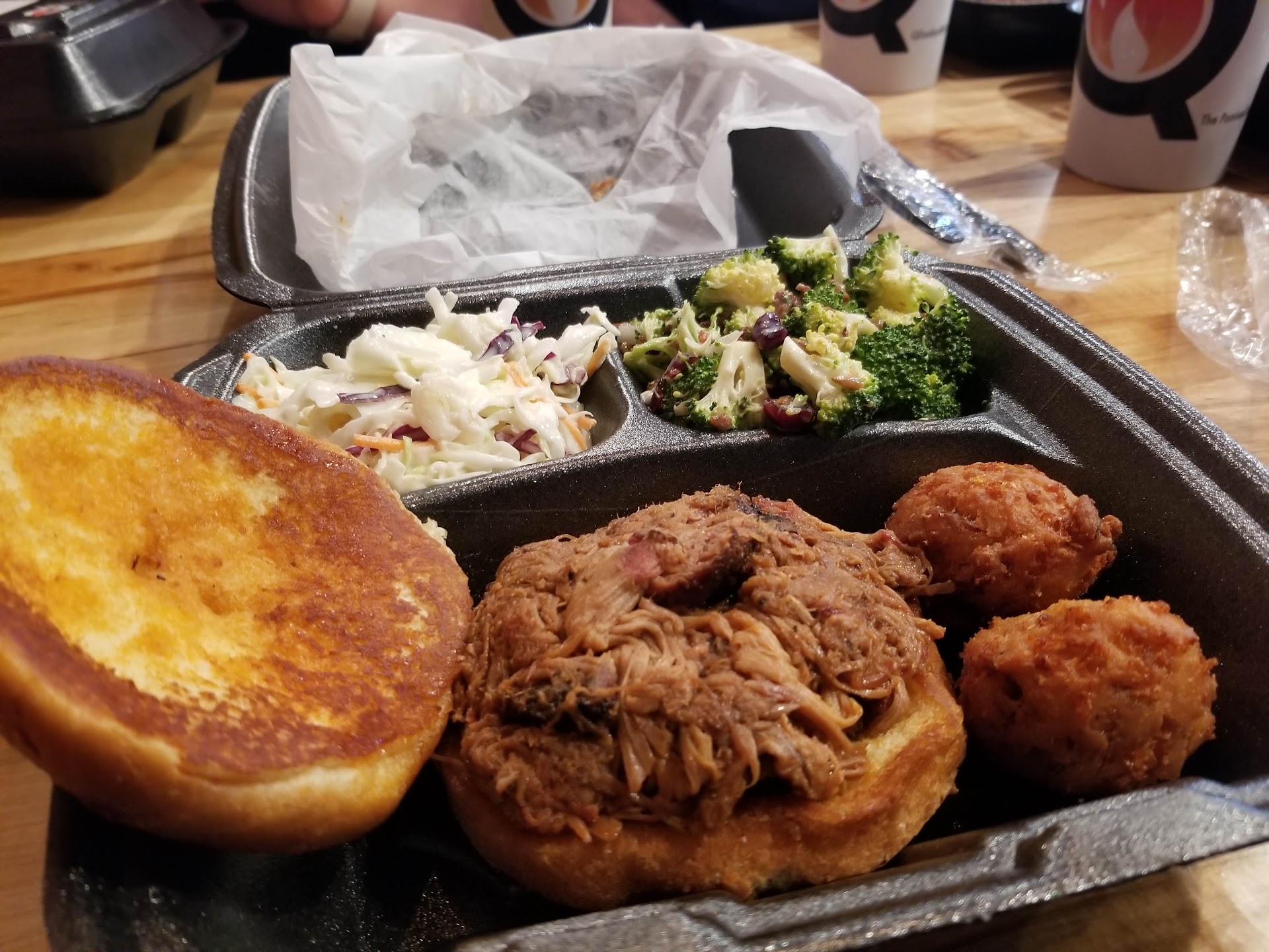 Read moreSo a coworker of mine kept bringing in these Q-daddy barbecue sandwiches to work. The sandwiches intrigued me so much I said I've got to try this place. I put it off for a couple of months before I said you know what today is going to be the day. Unfortunately, I was sadly disappointed with the results. I'm still trying to figure out in my mind, a week later how one combo meal and one sandwich comes up to $35.00. That's without a drink also. I don't understand that math. Secondly, If you're selling meat by the ounce; Why are you weighing the meat that you're selling me with buns on the scale as well? Also, why can I not see the scale as you're weighing the meat I'm purchasing? In regards to the food itself. The brisket was superb. Even after being chilled. The chicken salad missed the mark. Great flavor. However, the chicken itself was dry and the base was a bit runny for my liking. No one likes a soggy bun. Maybe they should incorporate some thigh meat, in with the breast meat. Just my opinion. I did appreciate that the sandwich was all breast meat. It was just too dry for me. In regards to the baked beans and hush puppies, they were...